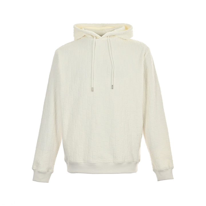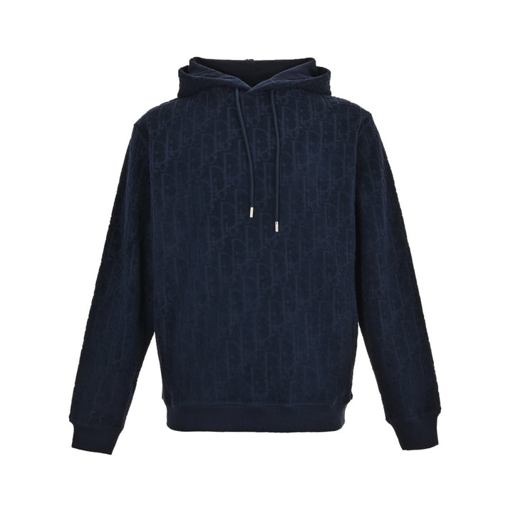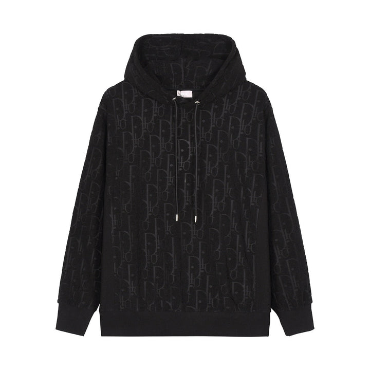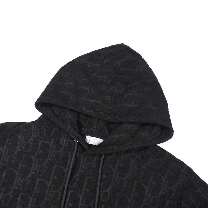 Classic all over print dark pattern terry embroidered hooded sweatshirt