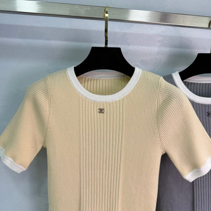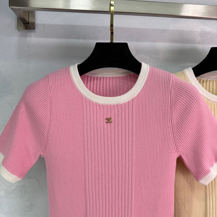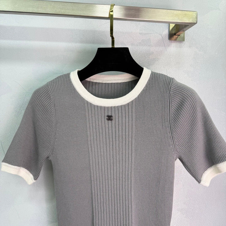 Color-Blocked Ribbed Knit Short-Sleeve Tees