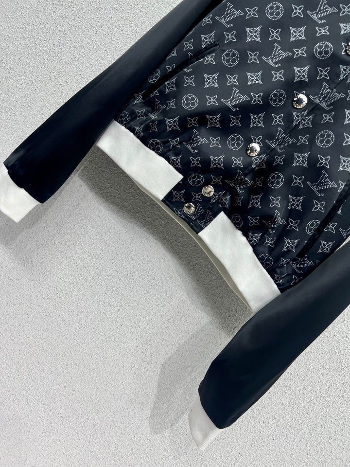 The color-blocked monogram jacket is exquisite and smart. It can be easily matched with any style! The customized imported fabric is crisp and stylish, full of high-end feeling. It is full of texture and fashionable. It is recommended to buy! The workmanship quality is reflected in the details. High quality, two colors, size S M L