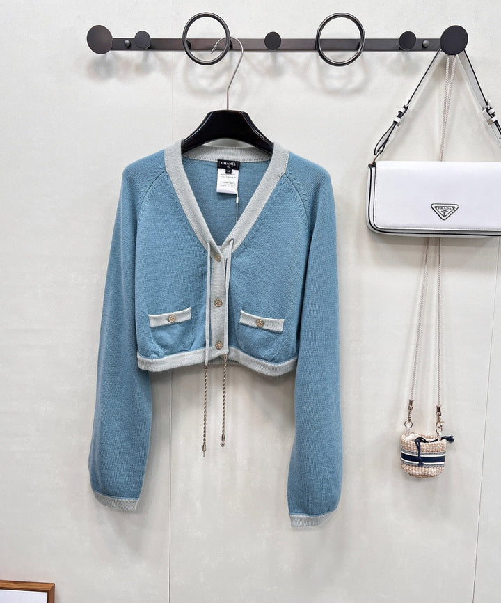 🆕Chane* 25A Handicraft Series New Contrast Color Binding Lace-up Knitted Short Cardigan丨⚠Exclusive high-edition product! Paying tribute to the classic Chanel design, reducing age and naughty girlish temperament! YB custom-dyed cashmere yarn is high-grade, comfortable and soft! V-neck three-dimensional tailoring, fine crochet texture throughout the body, large body with contrast color thread binding throughout the body, elegant and lazy temperament, rhinestone buckle and bow tie decoration on the chest, easily highlighting the perfect score of details and texture, double C rhinestone buckle embellishes the upper edge of the pocket, exquisite and stylish, suitable for layering and mixing, can be elegant and hot, fashionable and casual, now on sale SML