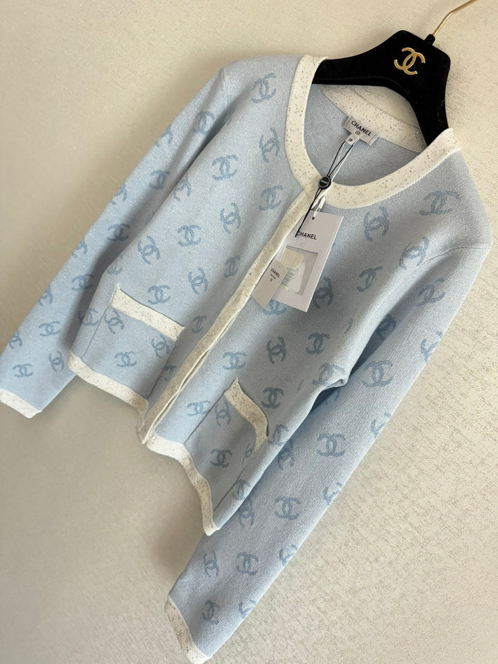 Light-colored logo knitted long-sleeved cardigan