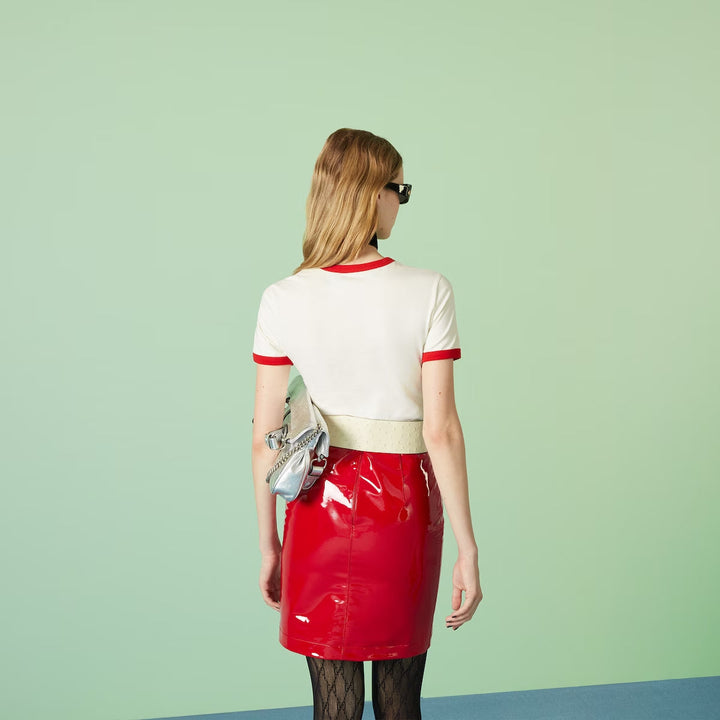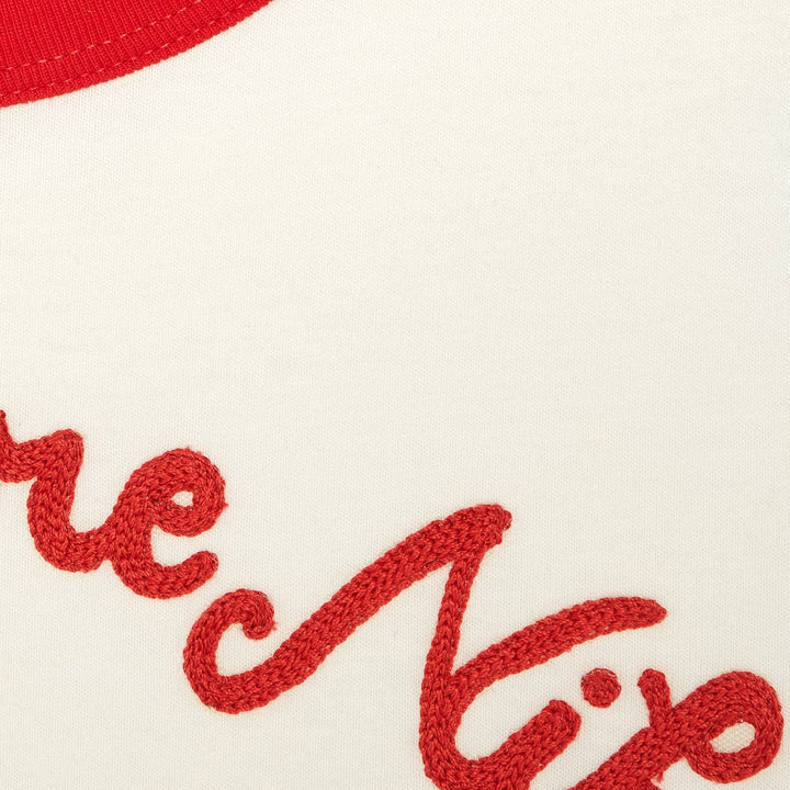 A graphic contrasts with blue trim on this white cotton-jersey T-shirt.