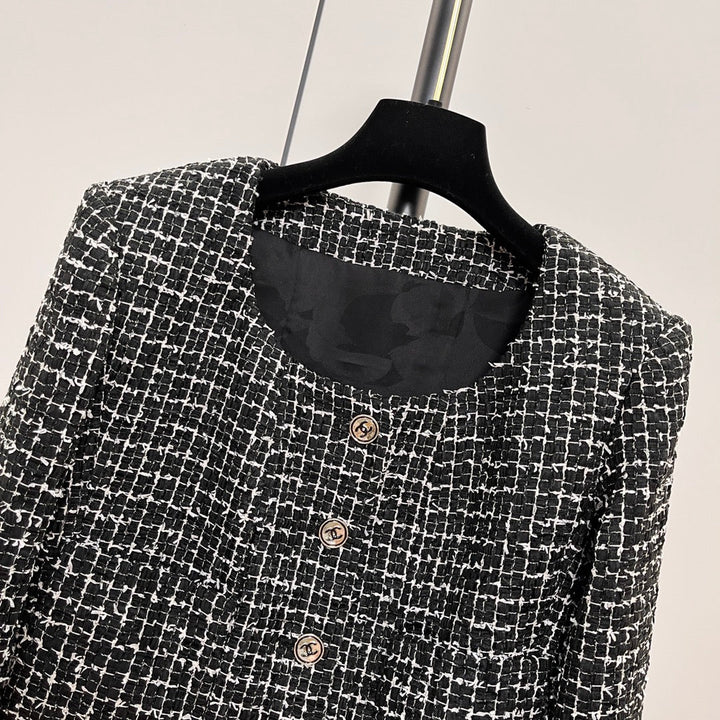 Elegant lady style, sweet or salty! Customized hardware denim buttons are beautiful! Temperamental round neck design, H version is fashionable and high-end! A must-have item for white, rich and beautiful women. The quality of workmanship depends on the details. Available for sale sml