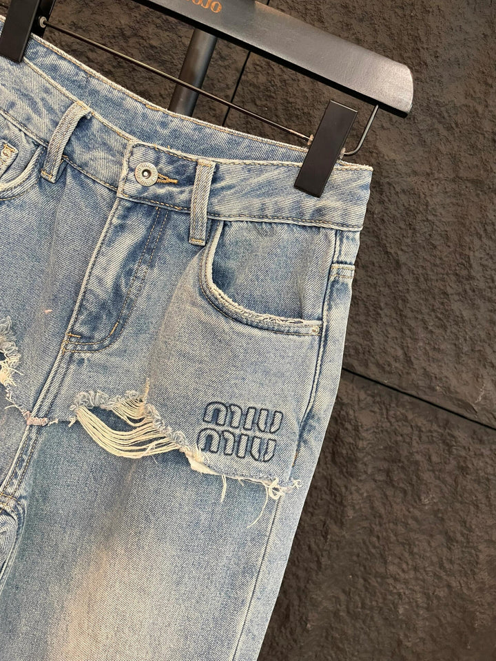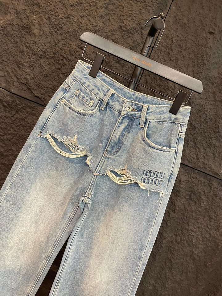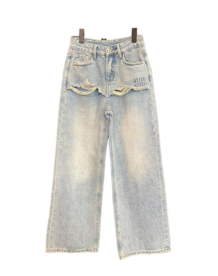 New High waist loose ripped jeans