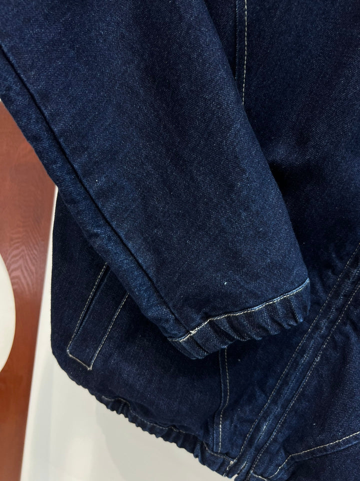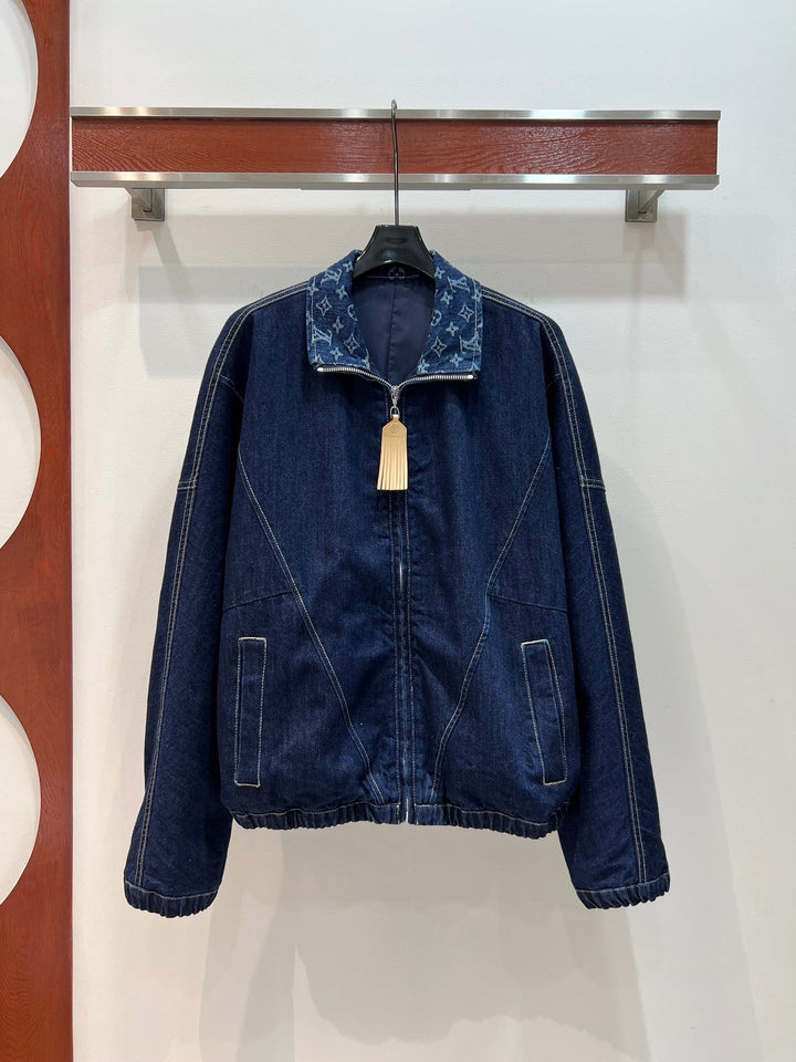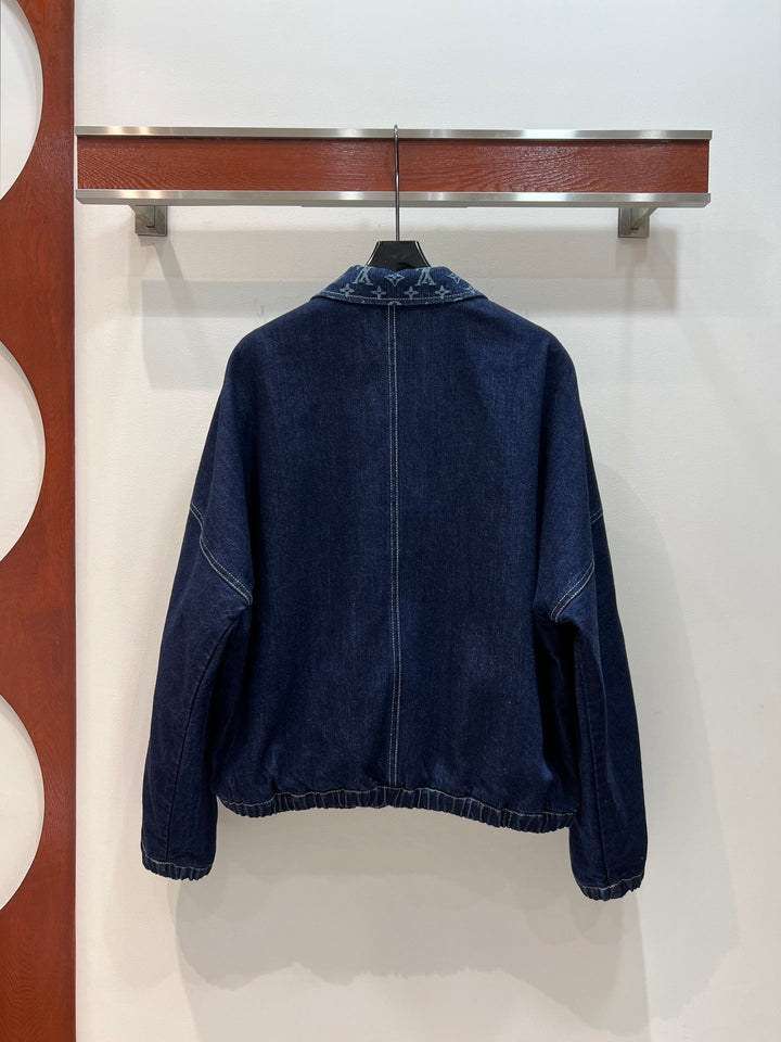 5 New Early Autumn Styles: Denim Zipper with Monogram Lapel. Slimming and Tall, Denim for All Ages. Comfortable touch comes from imported high-quality fabrics. Comfortable and soft. Crisp and stylish without sagging. Clean and neat lines. Every detail is just right. Dropped shoulder design for a loose fit. Spliced denim monogram jacquard lapel embellishment. The upper body is youthful and full of girlish feeling.