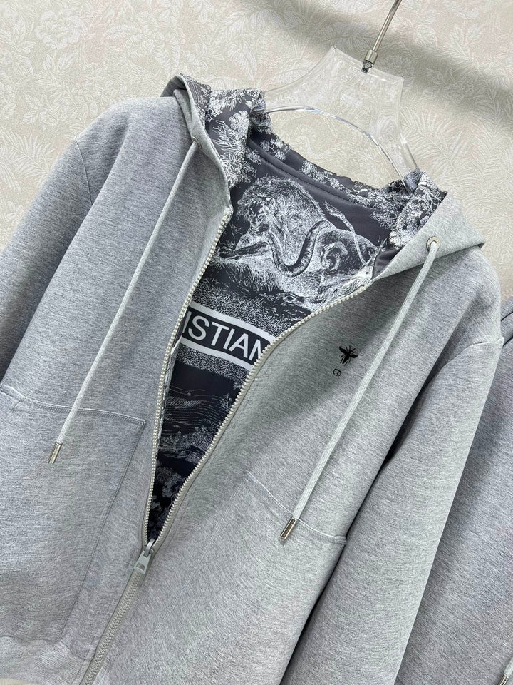 Double-sided hooded zipper + wide-leg combination with bee embroidery and classic jungle animal monogram print on the inside. Reversible. Casual, retro and fashionable. Simple contrasting color lines and outlines are very sporty. A must-have for lazy people. Get a sweet, cool and rebellious girlish look in seconds. Whether it is daily leisure or commuting, it can be combined. Special yarn customized high-elastic air cotton fabric. The cuffs directly fill the casual sports atmosphere. High version, identify the quality. Sold as a whole set. 2 colors and 3 sizes SML