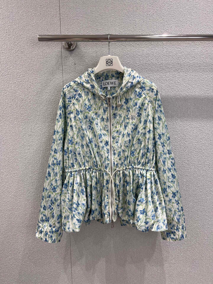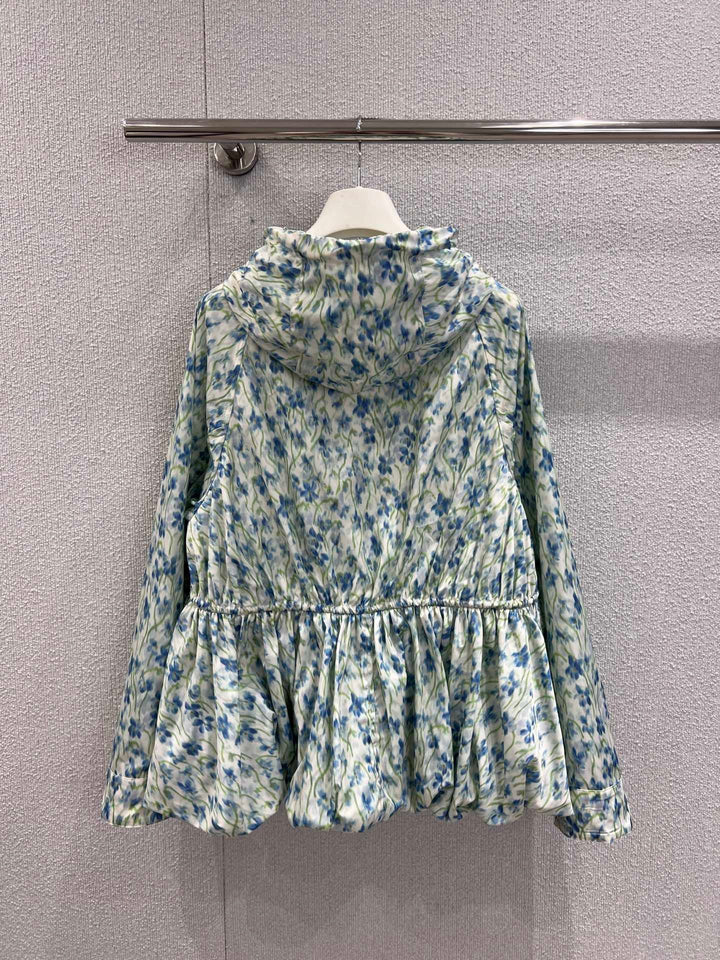 oew*25FW Early Fall New Light Blue Floral Hooded Jacket | ⚠ Exclusively developed by yb! High-top version! The loose, fitted A-line silhouette is flattering and flattering. The practical hood features an adjustable drawstring, a front metal zipper closure, and a white leather drawstring at the waist for a ruffled A-line hem. Whether you're looking for a sweet or savory look!