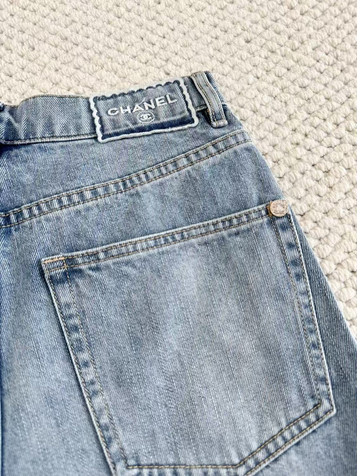 2025 Summer New Arrival Small Fragrance Coco Embroidered Denim Shorts SML