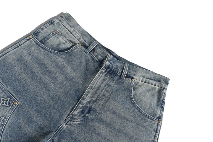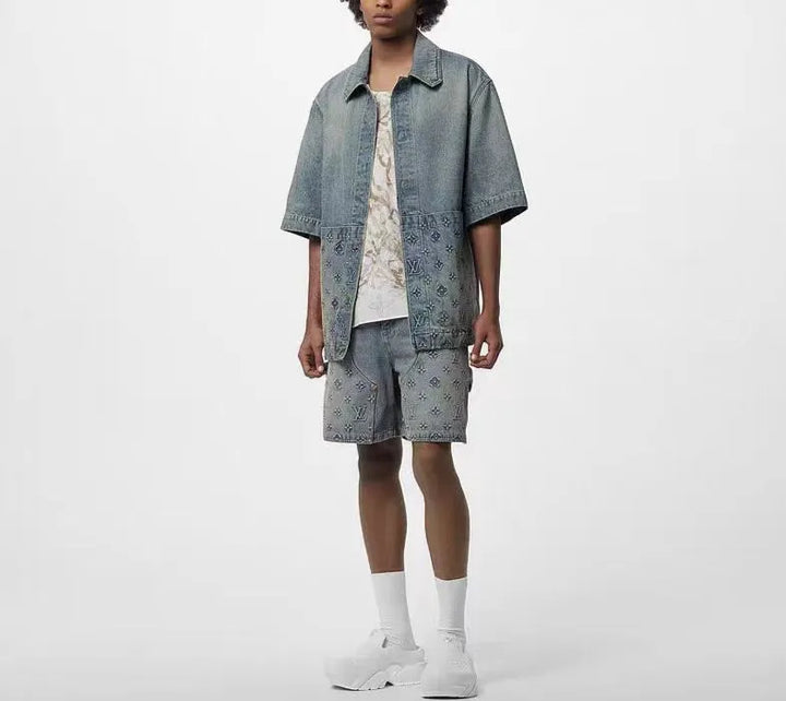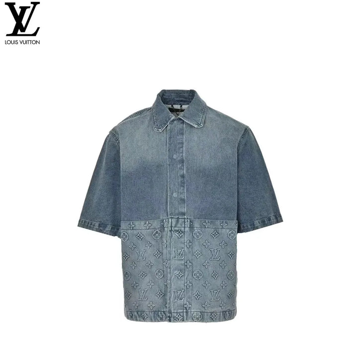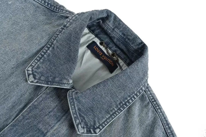 The denim jacket incorporates monogram embossed pockets into a casual workwear silhouette. It can be combined with the same style of work pants to create a trendy look, or it can be mixed and matched with other items to explore more fashion possibilities.