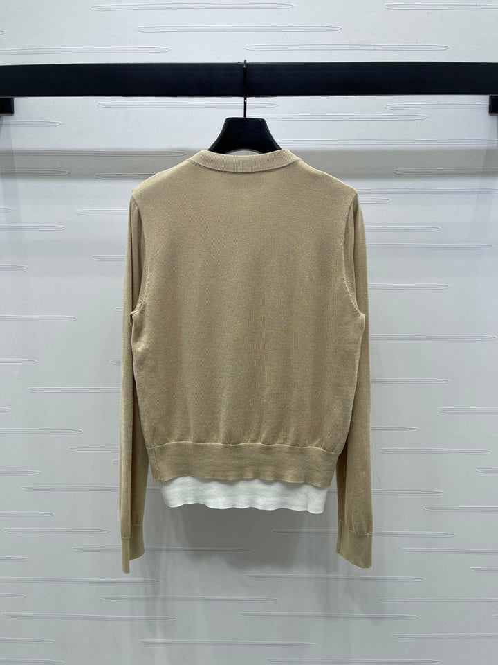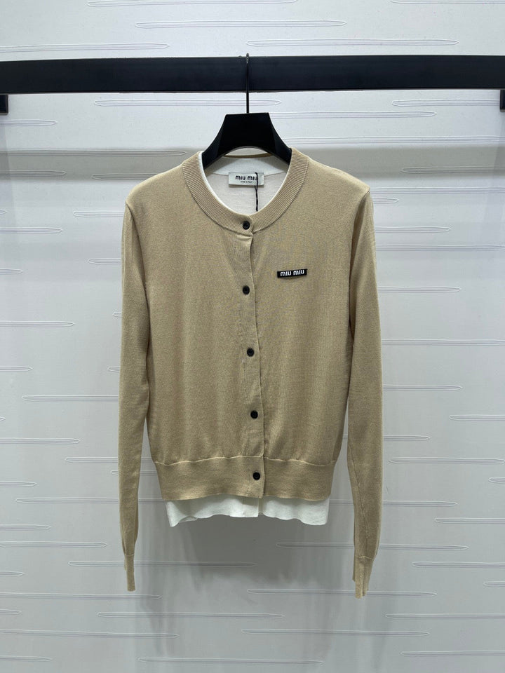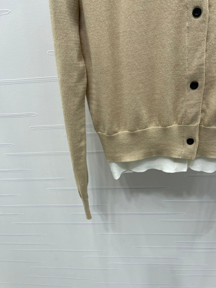 Fake two-piece knitted crew neck cardigan