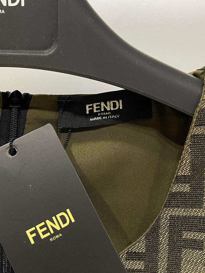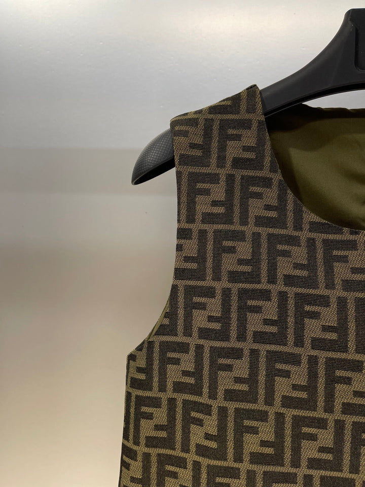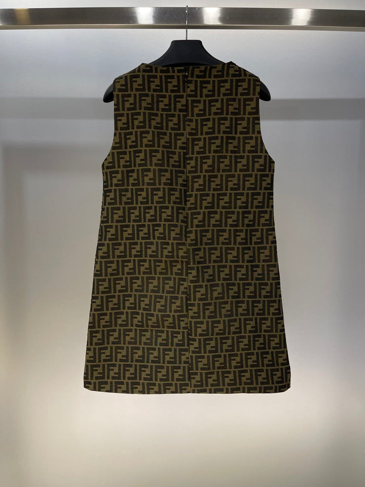 FD pocket letter embroidery all over double F letter jacquard monogram round neck vest dress