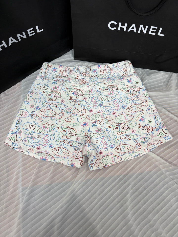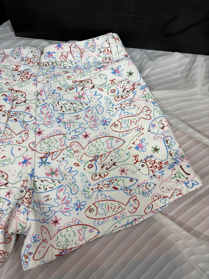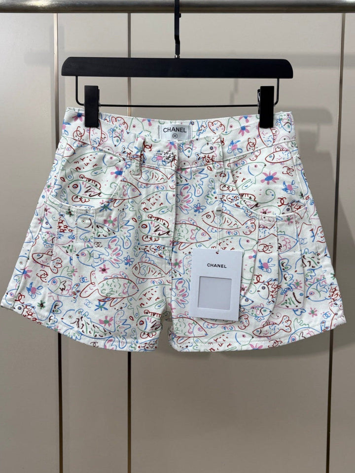 Introducing the must-have Chnl 2025 Spring/Summer Fish Print Denim Shorts—crafted from 100% premium cotton for unbeatable comfort and effortless style. The playful fish print adds a whimsical touch, while the classic cut ensures timeless versatility. Dress it up with a sleek blouse or keep it casual with a tank top—this piece instantly elevates any look.