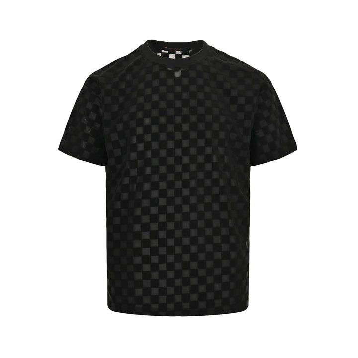 flocked checkerboard short sleeves