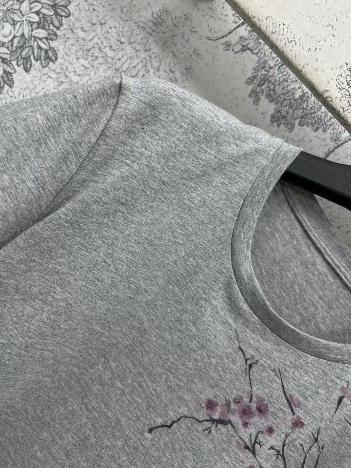 25 Spring and Summer new style Floral pattern gradient short sleeves Simple playing cards show the charm of the brand Daily must-have items Classic version of the temperament and elegant age-reducing girlish style Looks good with a gauze skirt Imported pure cotton texture is superb
