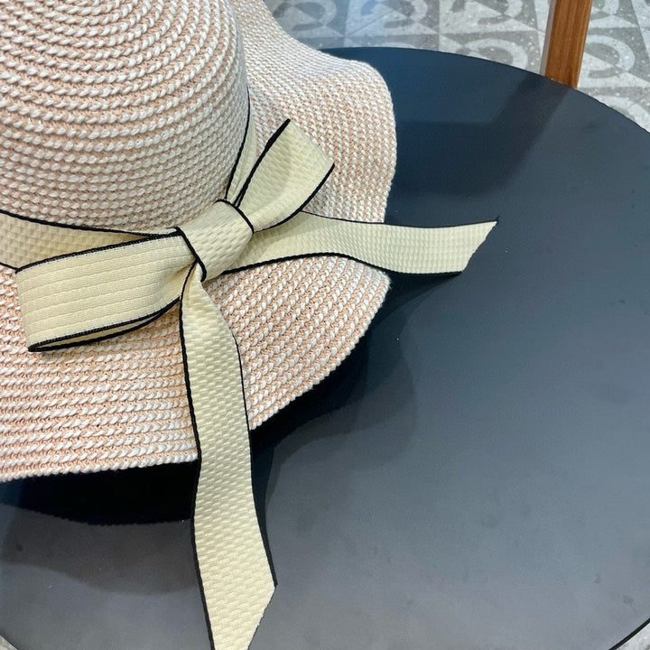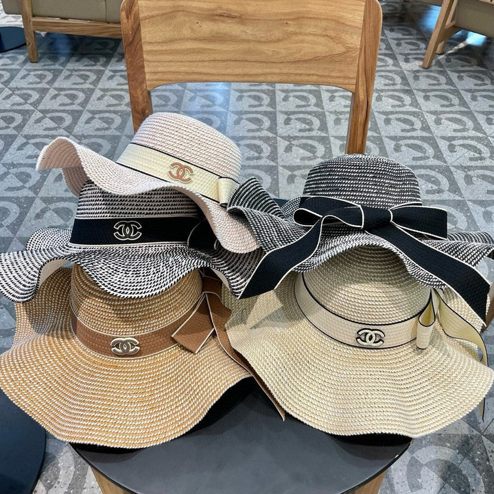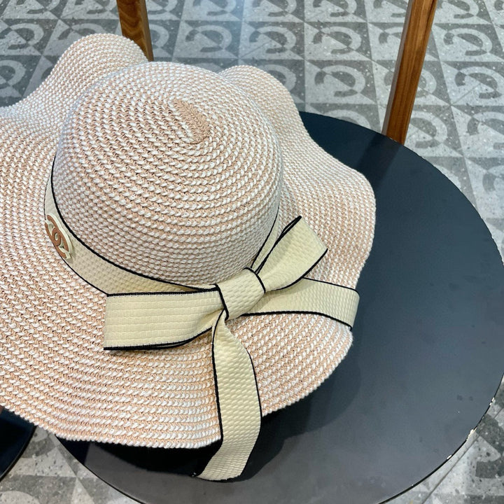 Ruffled pearl style wide brim hat, basin hat, straw hat, must-have for going out, easy to match, with adjustment rope