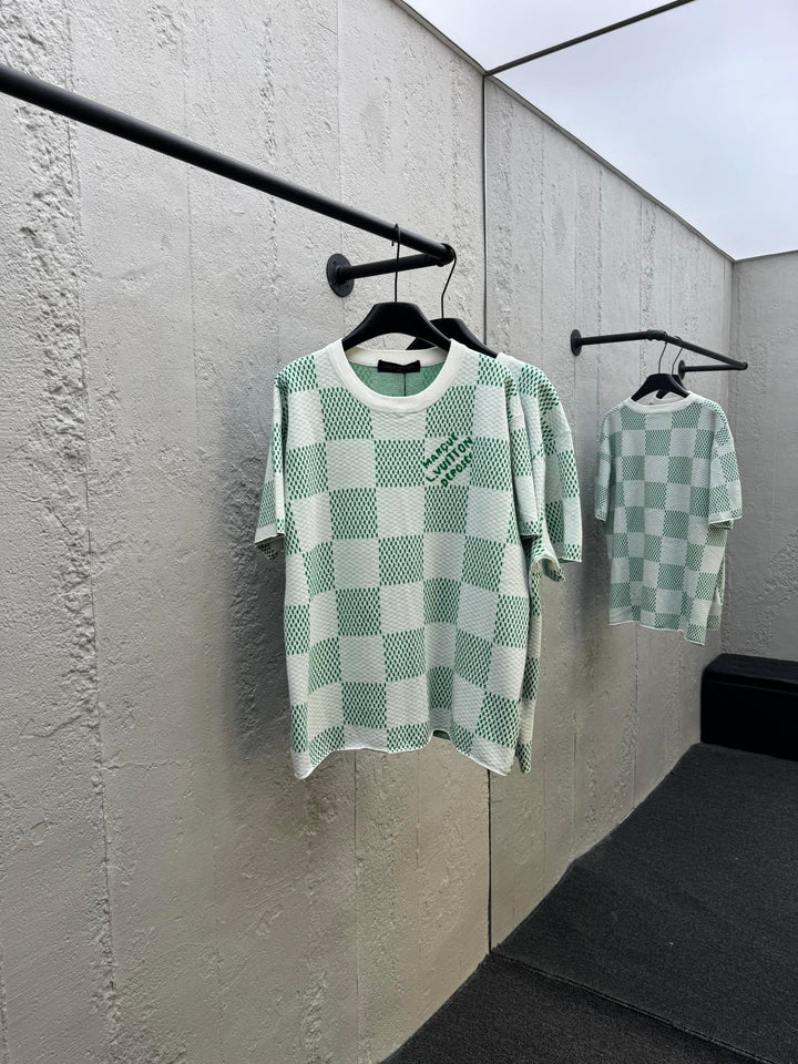 Green Checkerboard Jacquard Short Sleeve T-Shirt