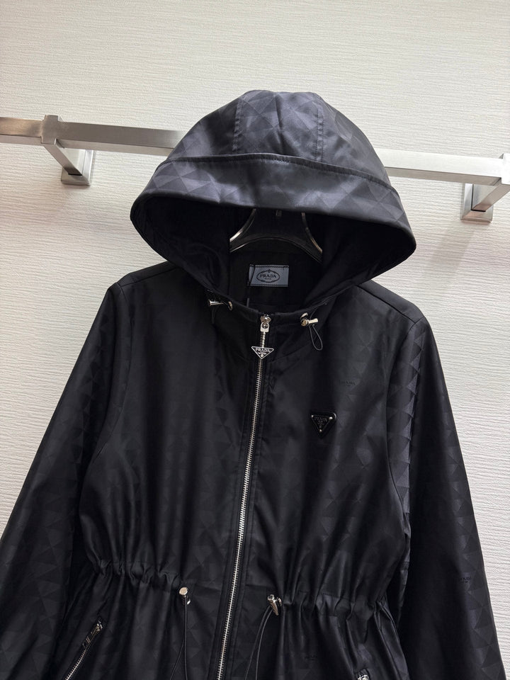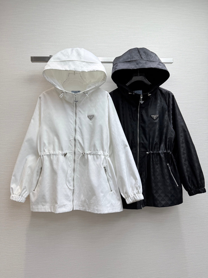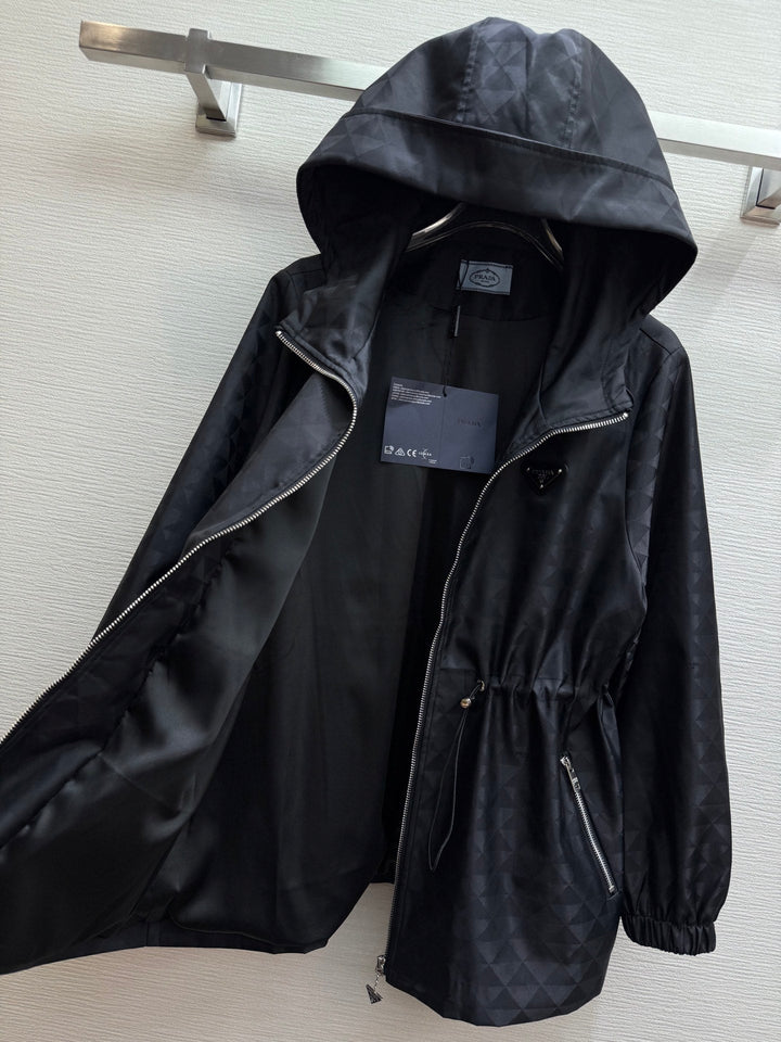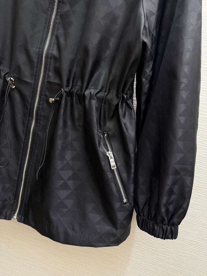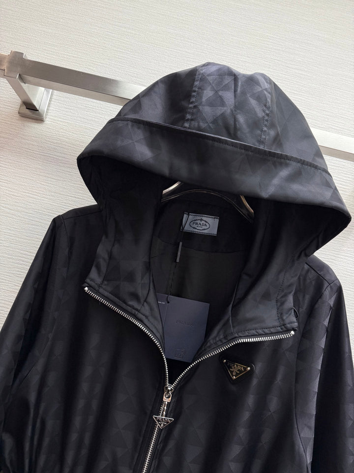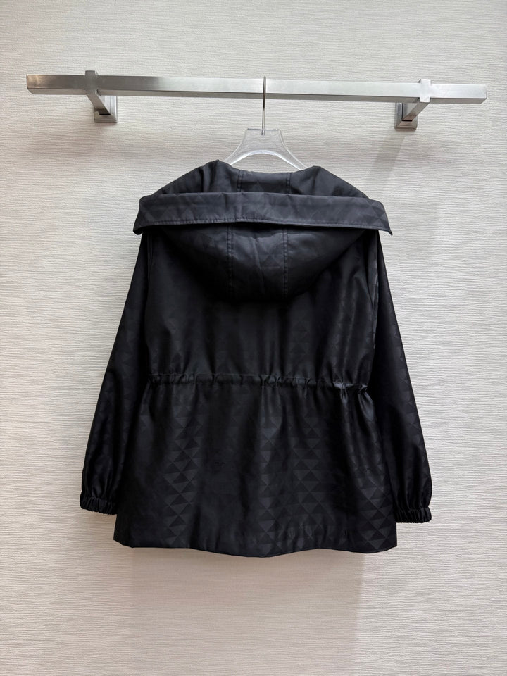New hooded jacquard jacket with triangular jacquard fabric decoration, drawstring waist design, high quality, two colors and three sizes