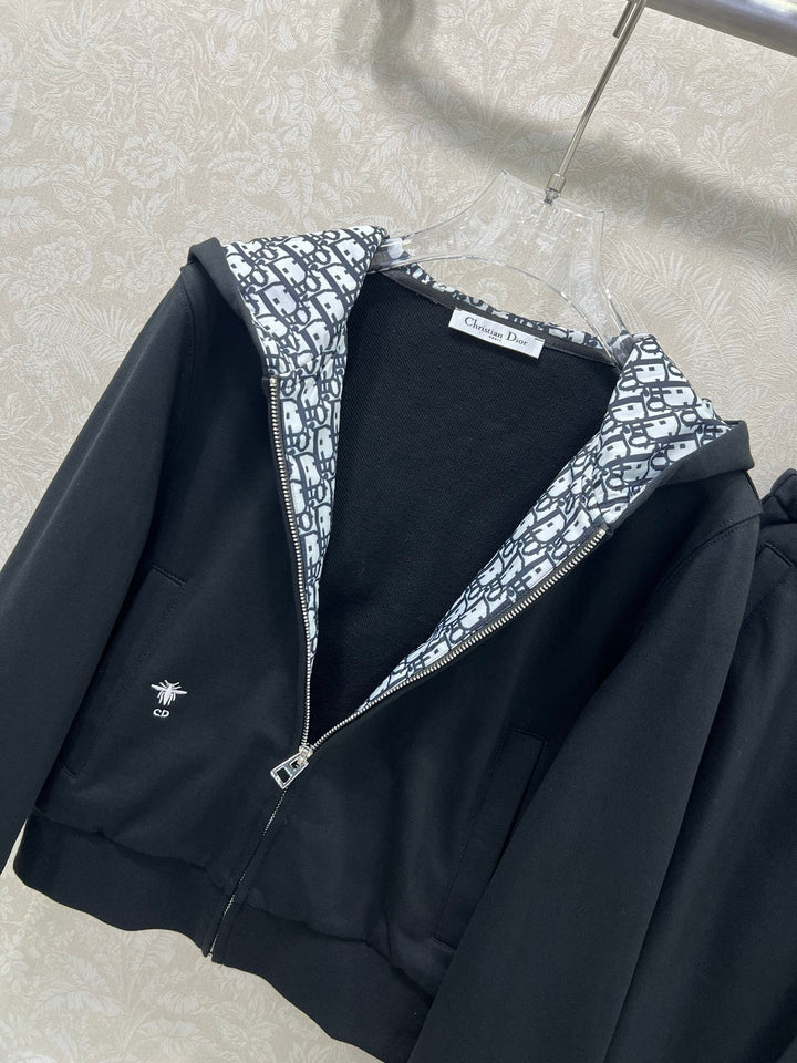 25 new sports suits, a combination of hooded zipper jacket and wide-leg trousers. The jacket has bee embroidery and classic monogram prints on the inside of the zipper. It is casual, retro and fashionable. The waistband of the trousers has monogram contrasting colors. The simple contrasting lines are very sporty. A must-have for lazy people. Get up and get a sweet, cool and rebellious girlish look in seconds. Whether it is daily leisure or commuting, it can be combined. Special yarn customized high-elastic air cotton fabric. The trousers directly fill the casual sports atmosphere. High version, identify the quality. Sold as a whole set. Single color 3 sizes SMLB