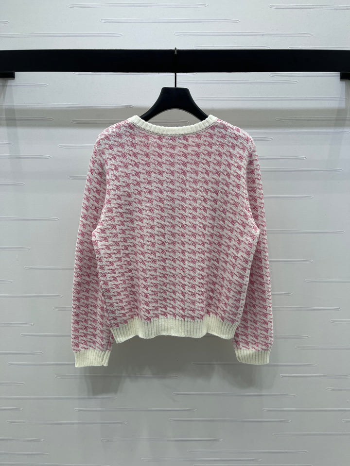 Our latest Early Fall 2025 collection! This houndstooth knitted long-sleeved sweater! Crafted from custom wool yarn, it's soft, comfortable, and stylish. The knitted texture adds weight and volume. The round neckline and long sleeves reveal just the right amount of skin, flattering the head-to-shoulder ratio and creating a slimming effect. The hem contrasts with the main body for a layered look. Two-tone houndstooth pattern weaves throughout, creating a strong retro feel. The regular fit is flattering and playful, giving you a youthful, youthful look. Perfect for everyday wear or get-togethers! Available in two colors! Sizes S-M-L3!