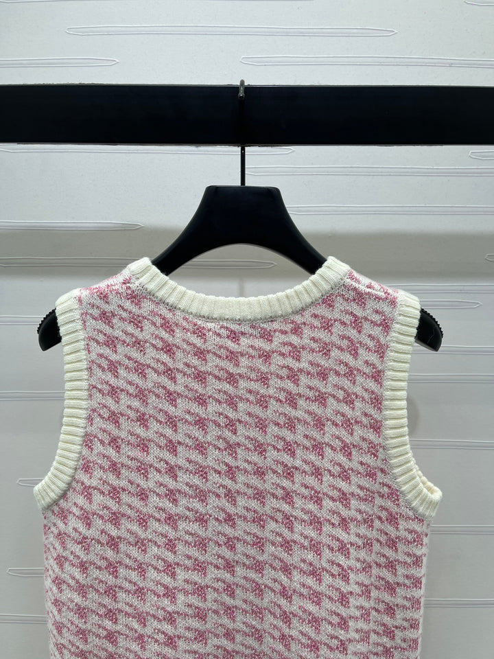 Our latest Early Fall 2025 collection! This houndstooth knit vest! Crafted from custom wool yarn, it's soft, comfortable, and stylish. The knit material adds a touch of volume and volume. The round neckline reveals just the right amount of skin, flattering the head-to-shoulder ratio and creating a slimming effect. The hem contrasts with the main body, creating a layered look. Two-tone houndstooth weaves throughout, creating a strong retro feel. The regular fit is flattering and playful, making it look youthful and youthful. Perfect for everyday wear or socializing! Available in two colors! Sizes S-M-L3!