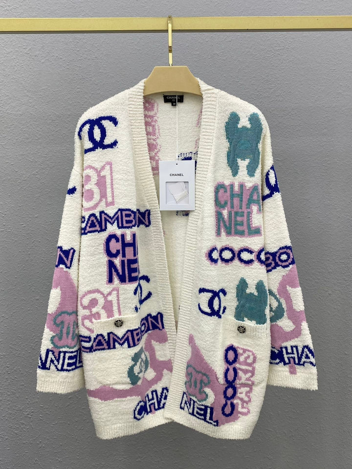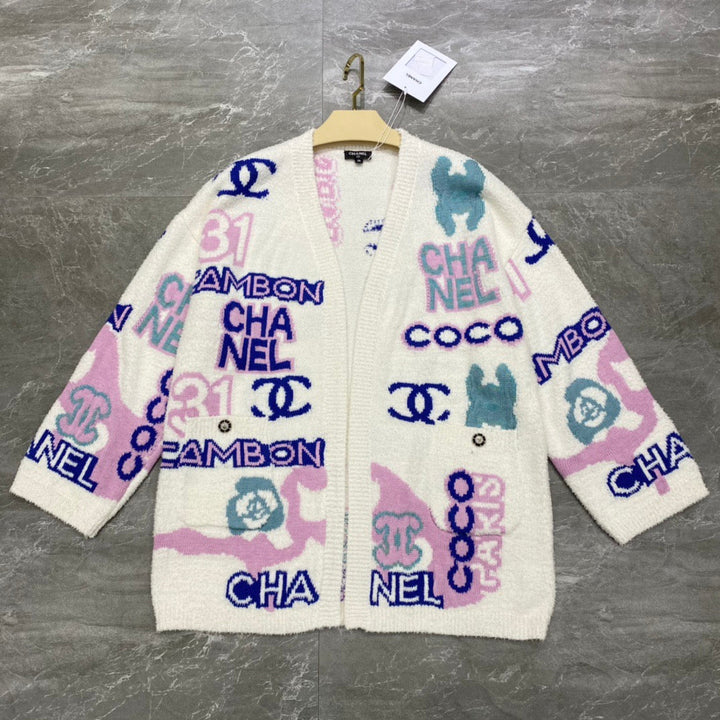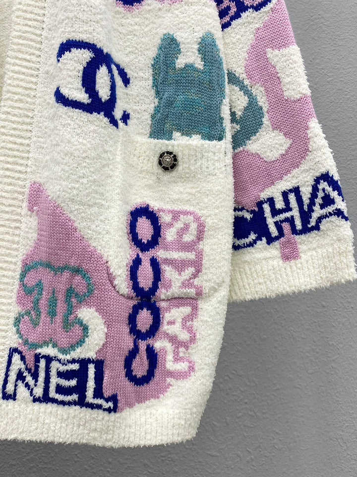 Real shot, CH Xiaoxiang style 🏠 New high-end handmade workshop series, custom-dyed with a variety of colored yarns Logo jacquard cardigan jacket, the yarn is soft and glutinous, super comfortable to wear, high quality ✔️ High version ✔️ Three complete labels ✔️ 36 38 40 sizes