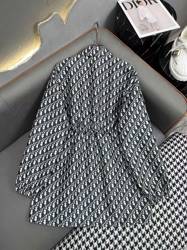 Lapel Zipper Long Sleeve Dress