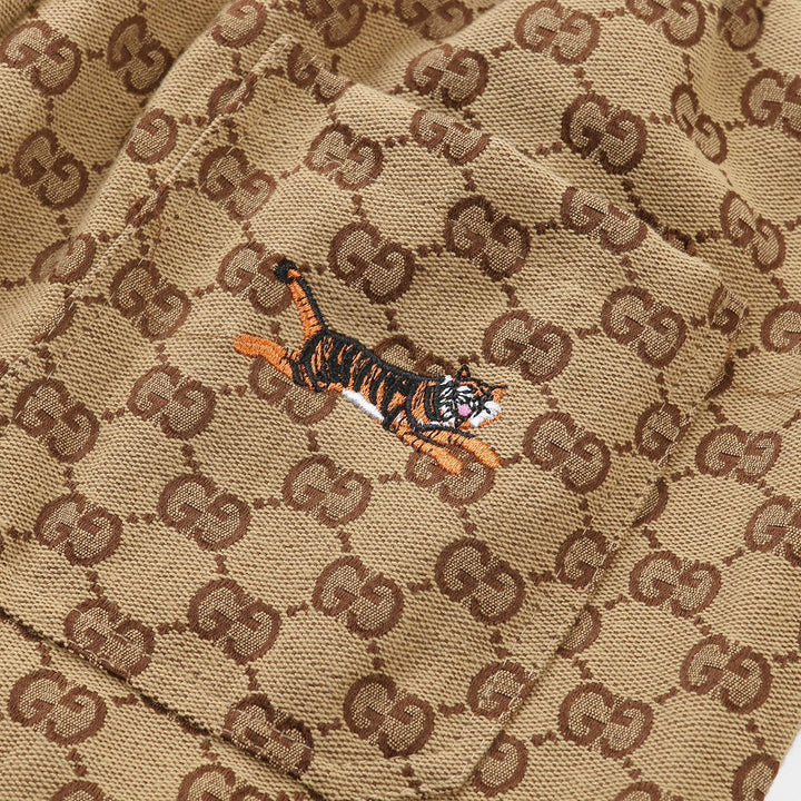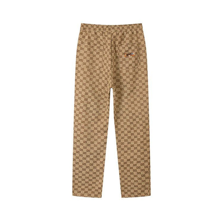 Tiger Embroidered Canvas Print Casual Pants