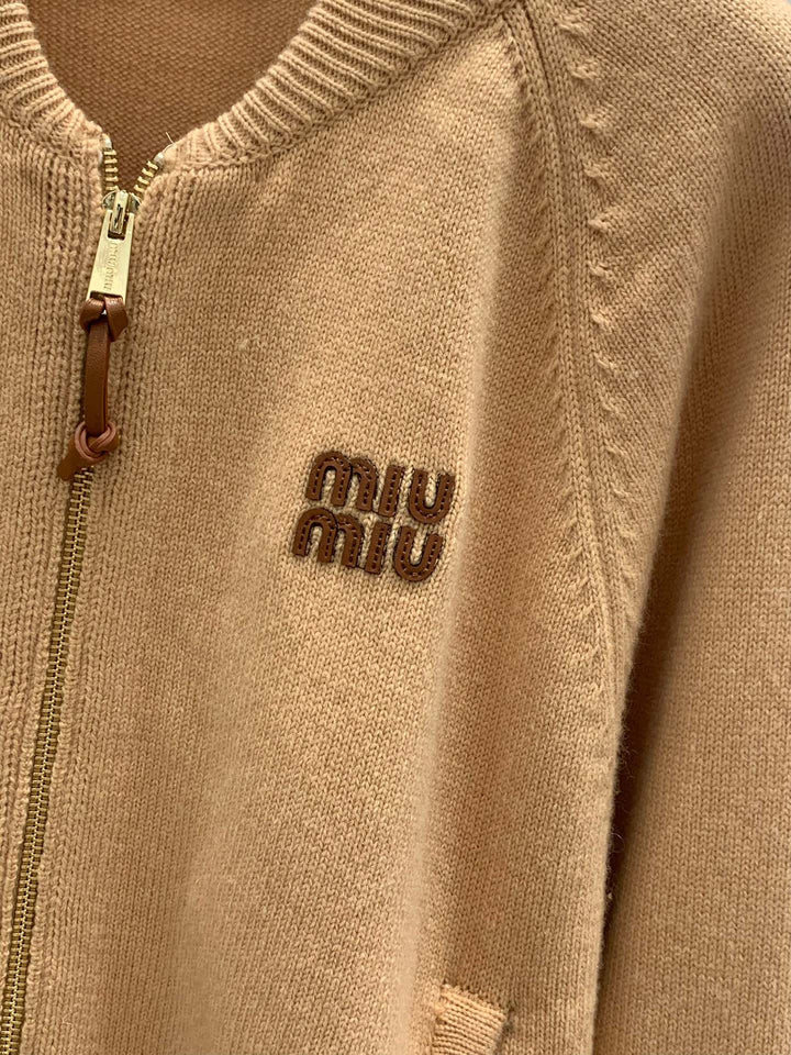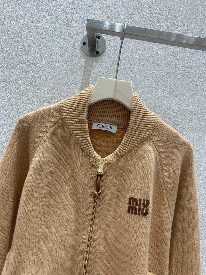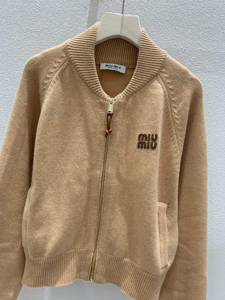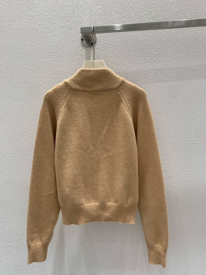 Knitted stand collar cardigan🆕 Raglan sleeve design Letter logo decoration Letter logo metal zipper Two pockets decorated with letter logo zipper embellishment High-end fashionable and versatile Size sml