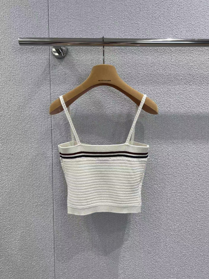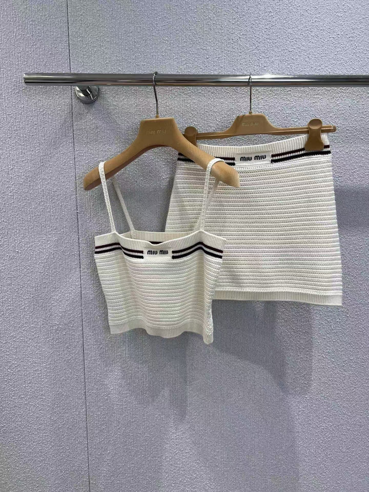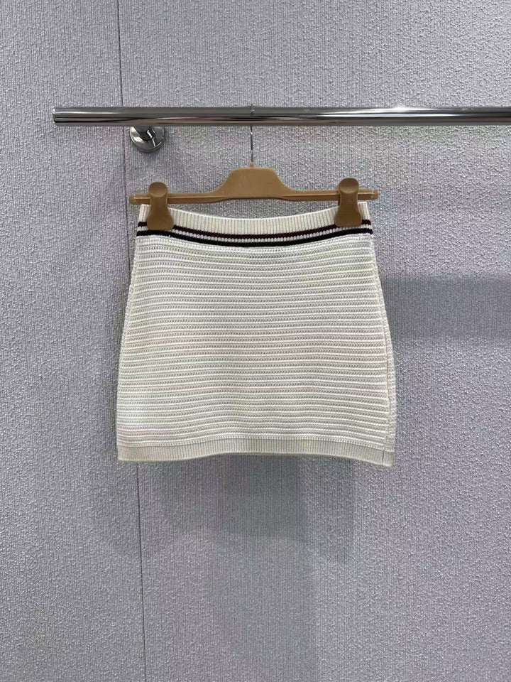 25Ss new spring and summer micro-label knitted suspenders + skirts 丨 classic contrasting stripes and brand logo embroidery patterns embellishment Showing the fashion sense of big brands, stretch knitted short skirt, fits the hip shape but not tight, soft, skin-friendly and breathable, age-reducing and fashionable without being picky