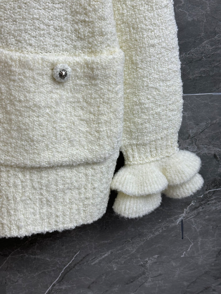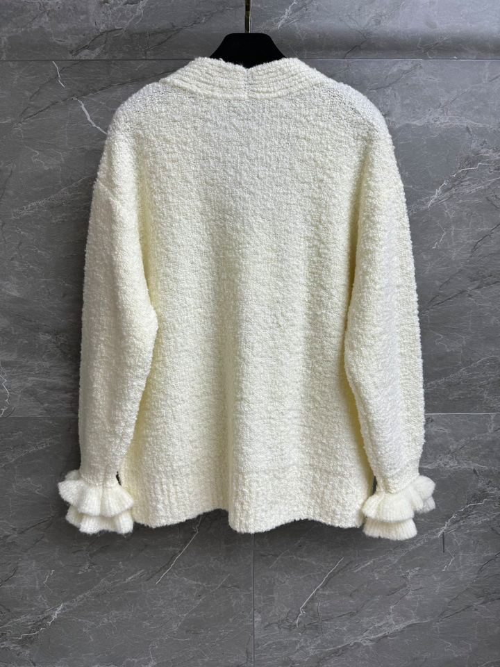 2024 autumn and winter series Temperamental v-neck collar Lotus sleeve design Lion head buckle decoration Lazy and gentle high-end Customized special yarn Cashmere blended fabric Soft, thick and warm Loose version The upper body looks slim and elegant