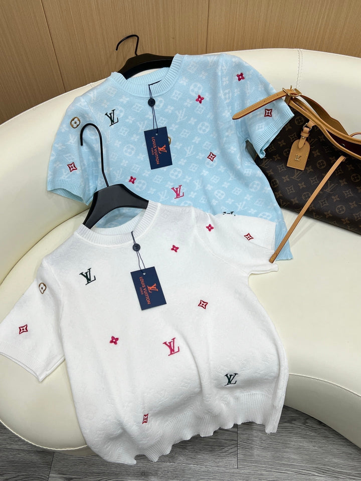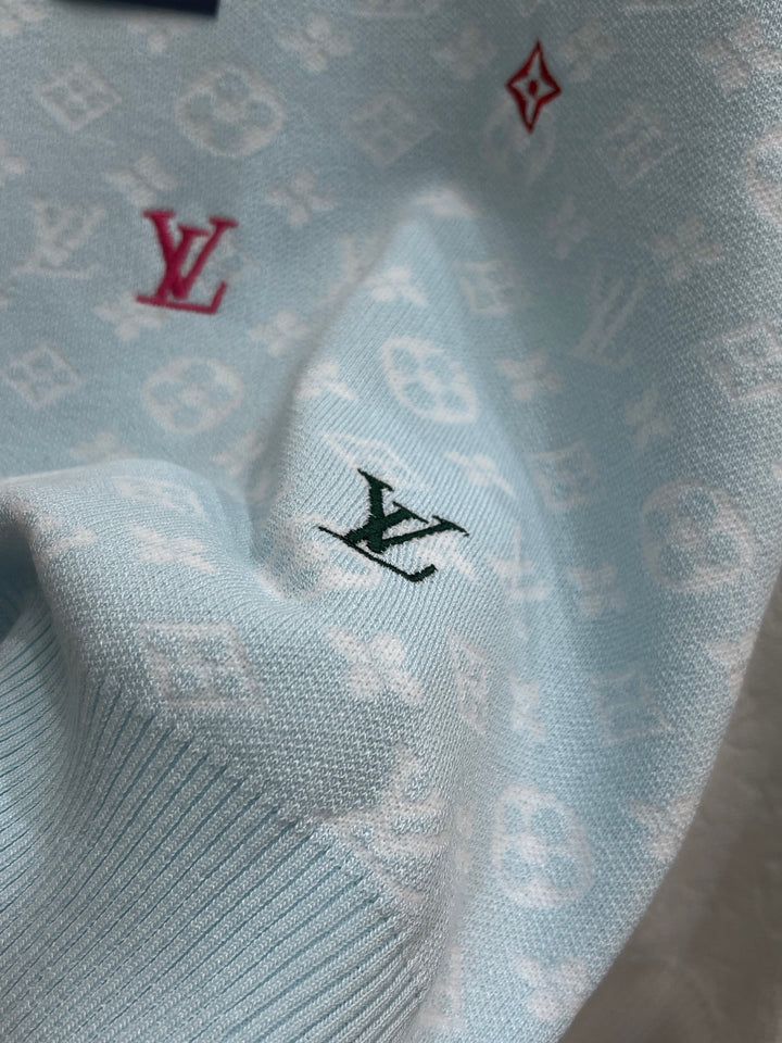 This exquisite L v knit sweater features a luxurious all-over monogram print, meticulously crafted with intricate embroidery for a textured, high-end finish. The lightweight knit fabric ensures comfort and breathability, while the classic crewneck and relaxed fit offer timeless elegance. Signature Lv motifs are artfully integrated into the design, making it a standout statement piece. Perfect for layering or wearing solo, this sweater effortlessly blends sophistication with contemporary streetwear appeal. Ideal for fashion-forward individuals seeking a refined yet bold addition to their wardrobe.