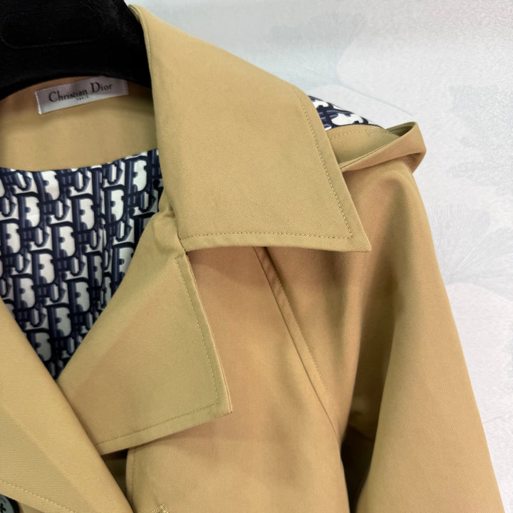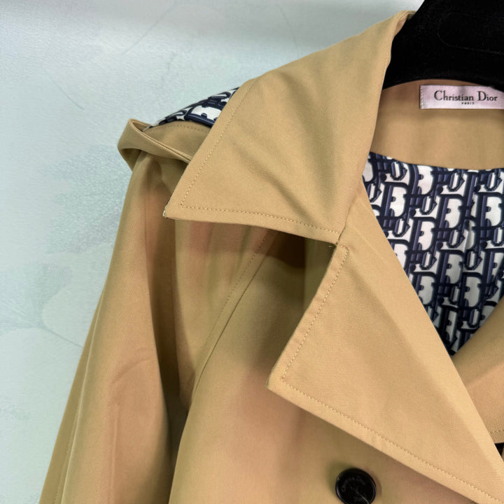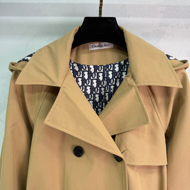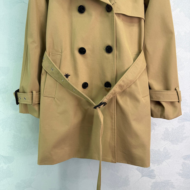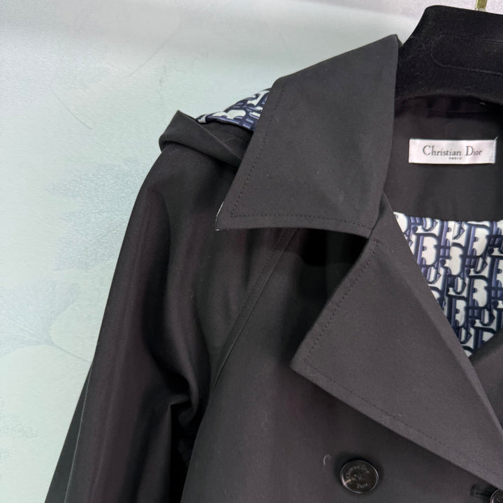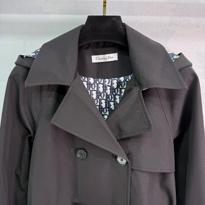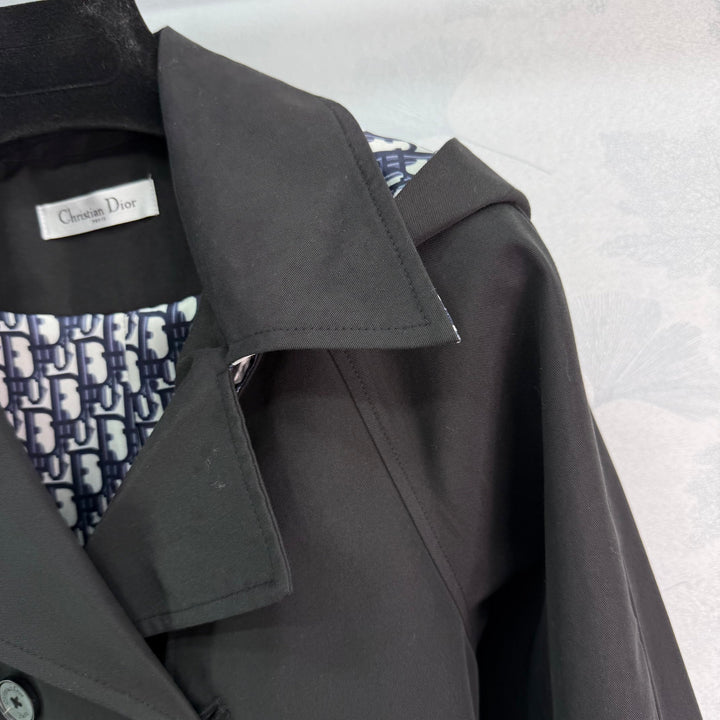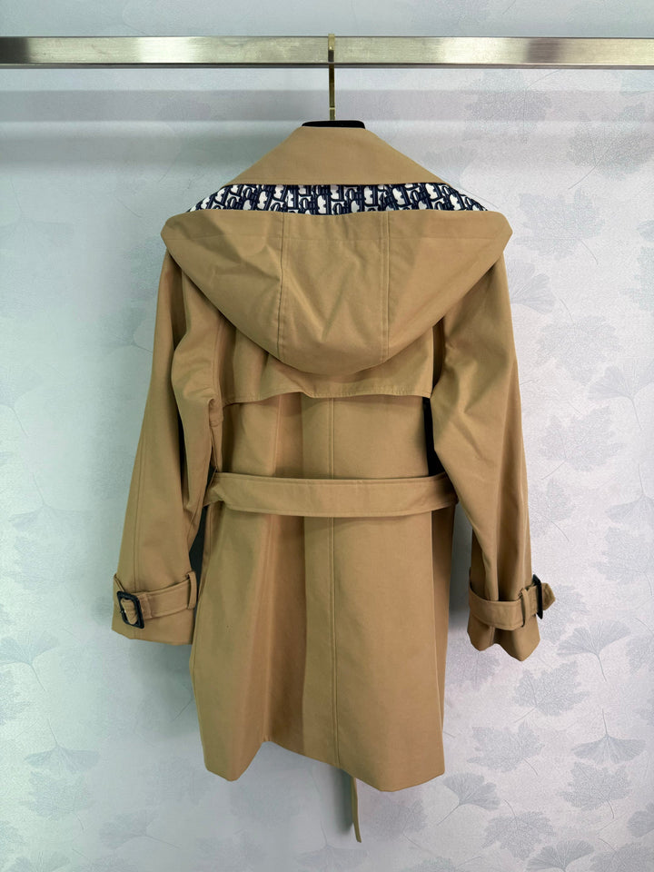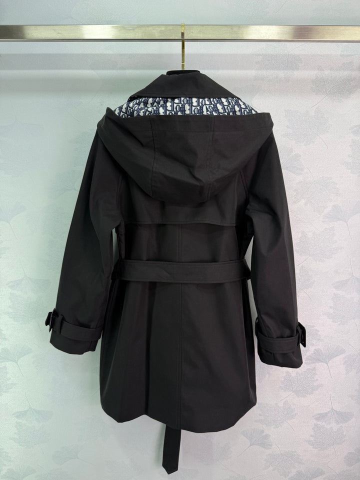 New style lapel belt windbreaker jacket, customized YB imported windbreaker material, crisp, comfortable and stylish, the brim is covered with iconic letter logo elements to highlight the brand tone, the opening button adjustment is matched with the original fabric belt adjustment design, full of details to add overall layering, the peak lapel shape, the upper body is retro and high-end, the surface and accessories are developed, the lapel hooded windbreaker version is tailored, the early autumn fashion and elegant windbreaker, the temperament is charming and British and elegant, 2 colors and 3 sizes sml
