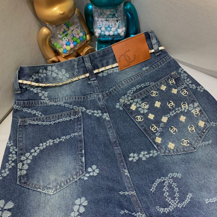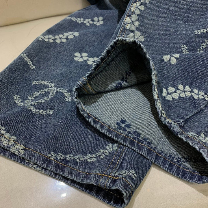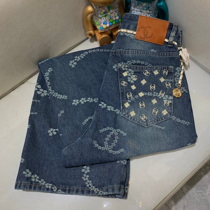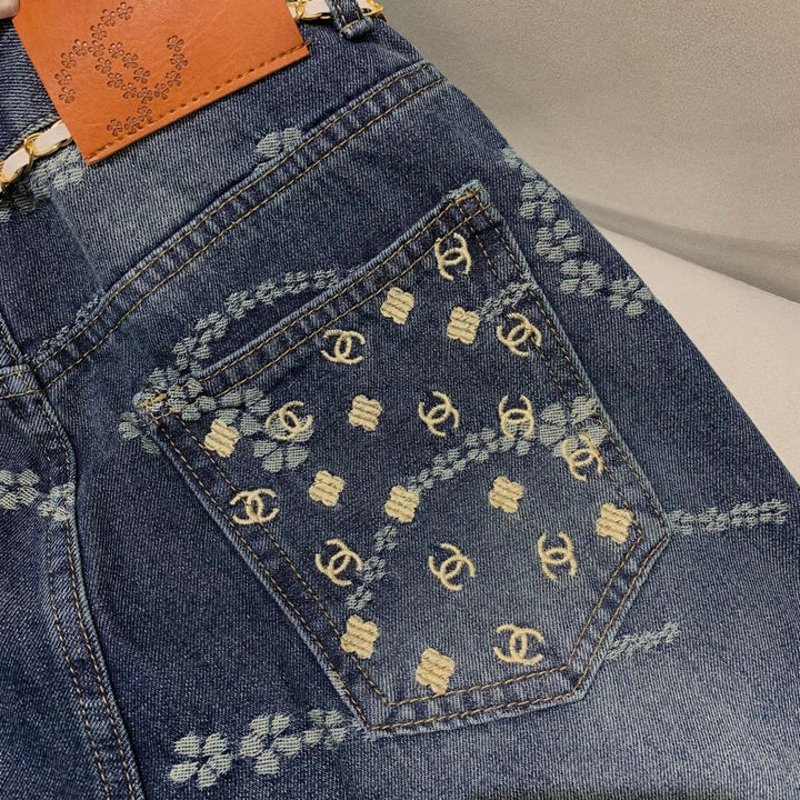 Laser pocket embroidery jeans