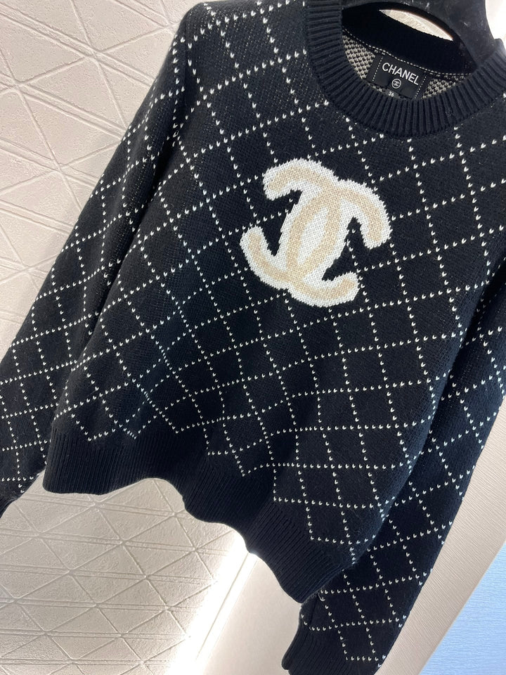 Diamond pattern embroidered pullover sweater