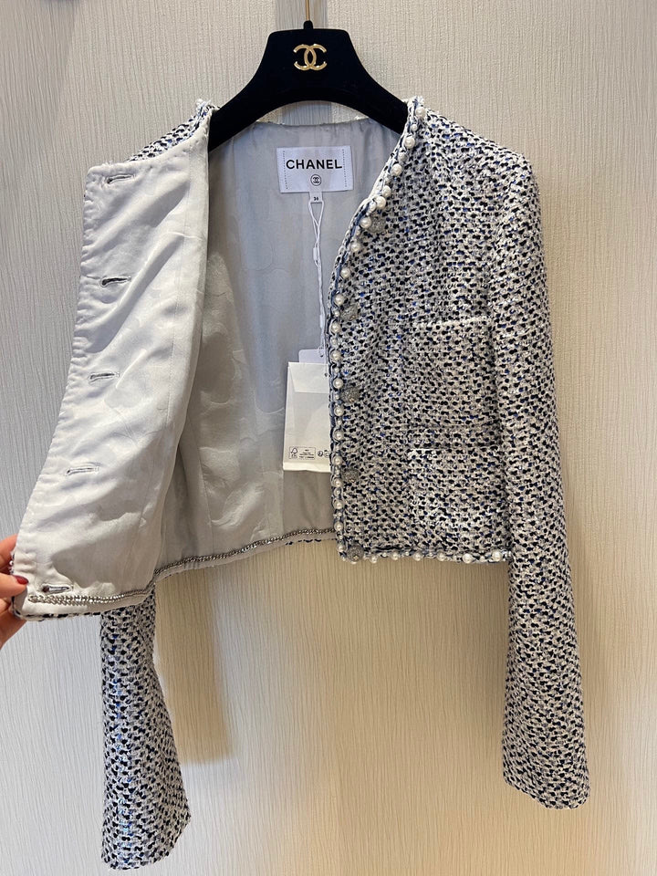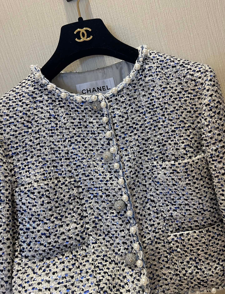 New early spring light blue sequined pearl wool 🆕 The neckline extends to the front and hem with three-dimensional binding decoration embellished with pearls of different sizes, and the delicate blue, white and silver light spinning yarn and sequins are interwoven to create a texture that is spread all over the body. The celebrity style is immediately revealed and the perfect interpretation of the elegant and gentle feeling of the daughter of a wealthy family is fully displayed. No matter whether it is matched or not, it can easily create different styles. It looks good on everyone.