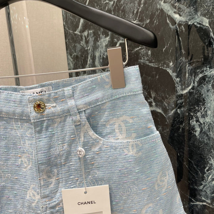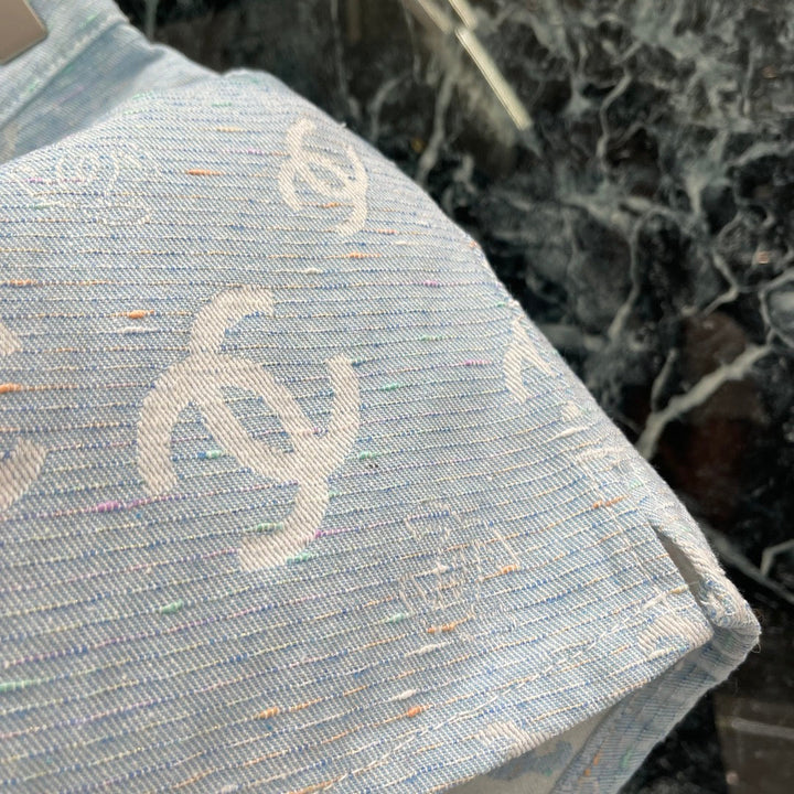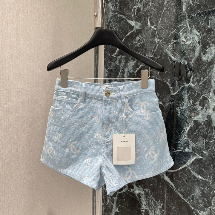 Light-colored jacquard print denim shorts