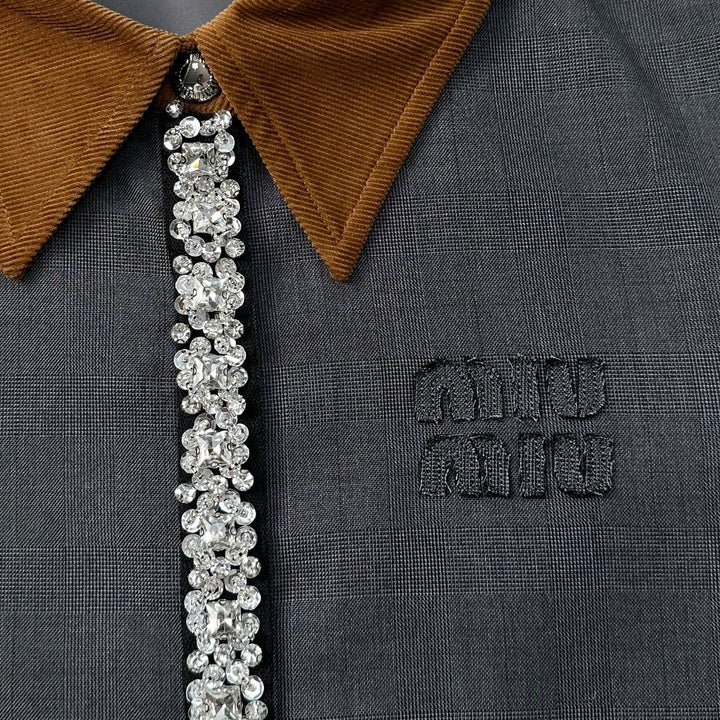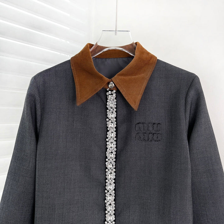 Preppy jacket, a very popular style this year, a corduroy lapel jacket with a row of heavy beading for a French retro feel