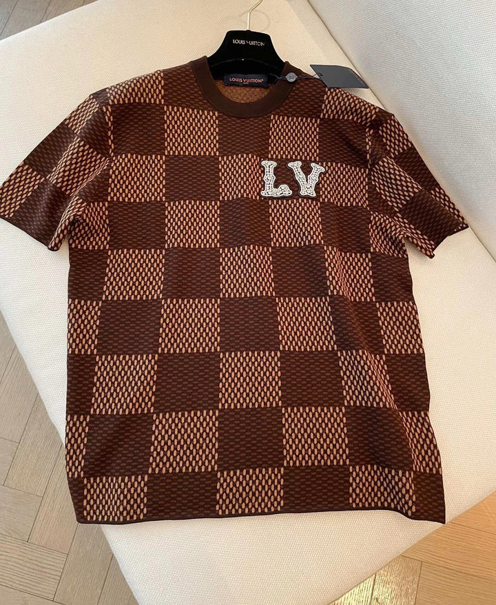 Plaid beaded checkerboard short sleeves