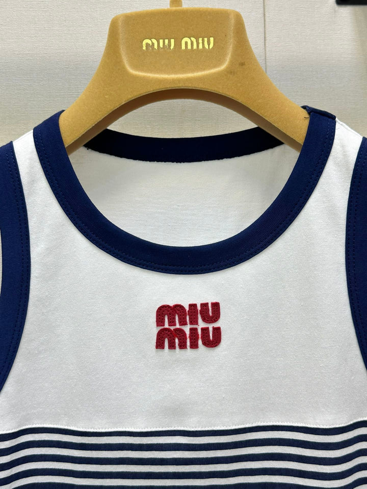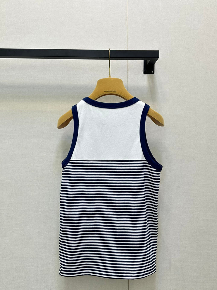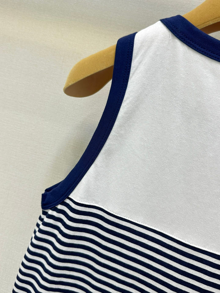 New for Spring/Summer: Micro-branded cotton striped contrast vest. Original development, high-quality product! Made of cotton fabric, featuring contrasting brand logo embroidery, youthful striped pattern, contrasting ribbed trim, slim-fit stretch silhouette, and impeccable craftsmanship.