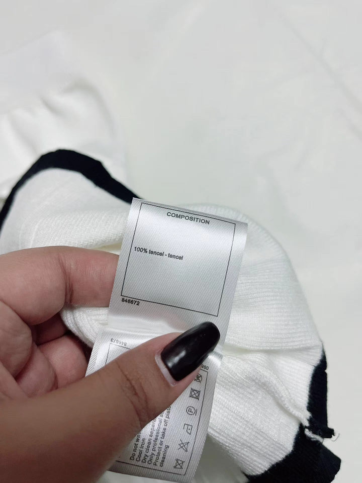 New knitted mid-neck contrasting shoulder-less vest and short skirt suit