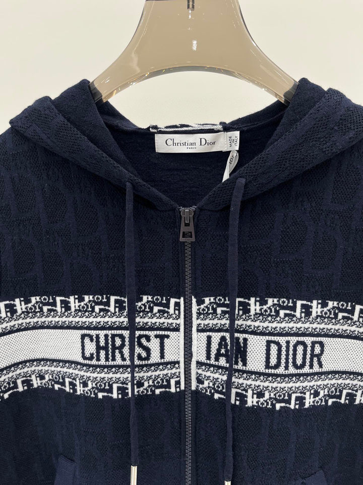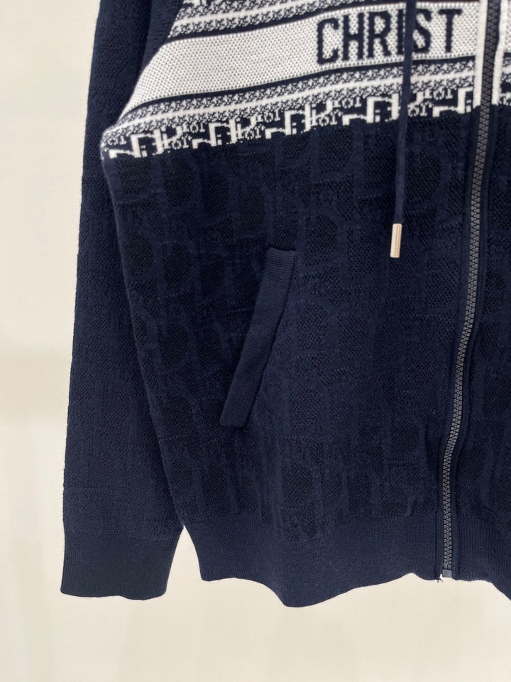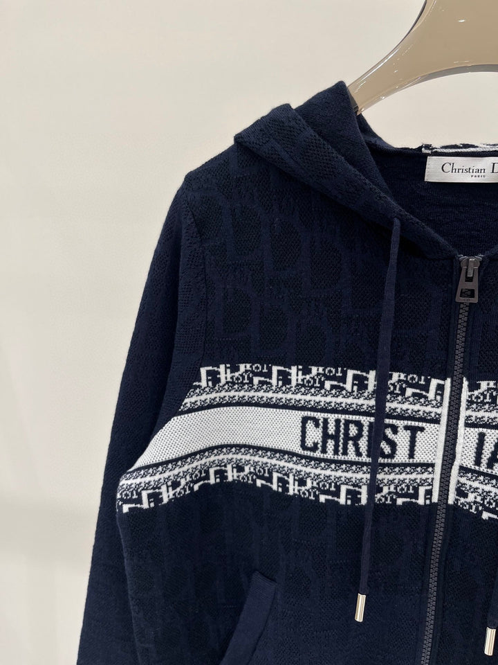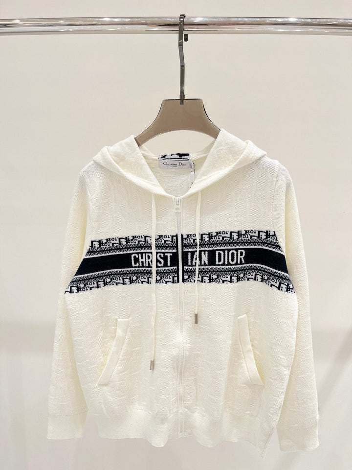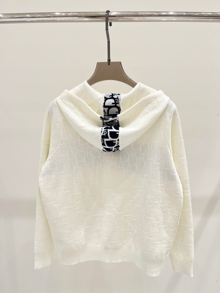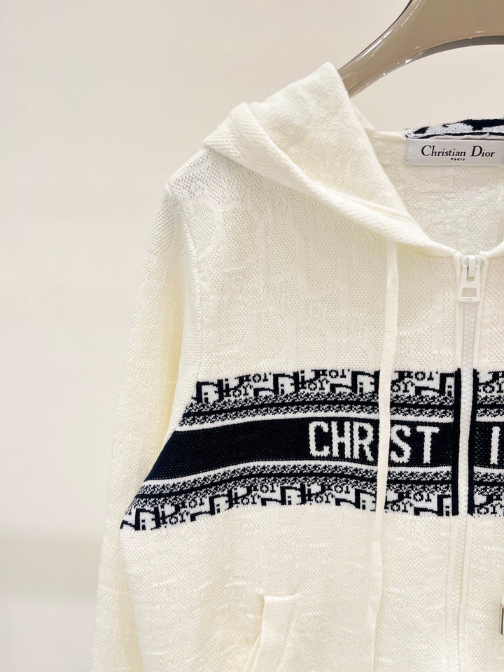D New Hooded Monogram Letter Zipper Knitted Long Sleeve