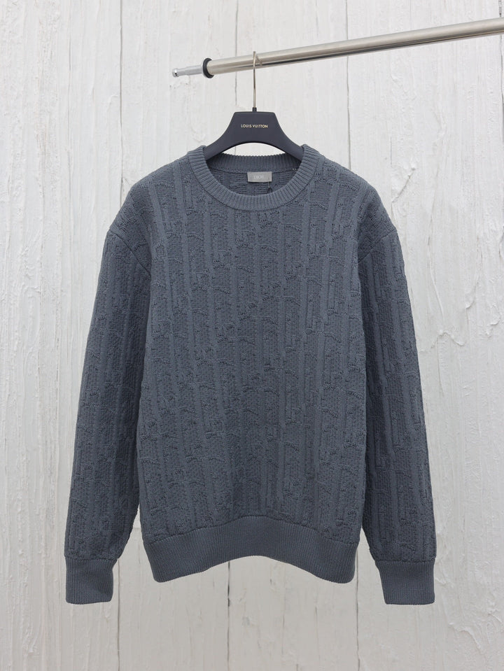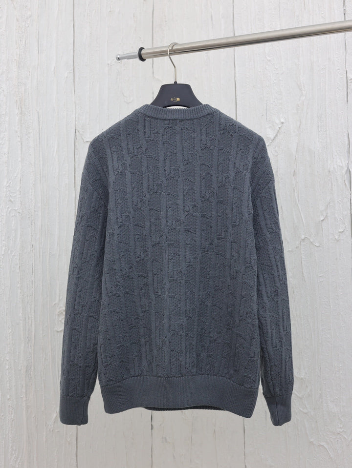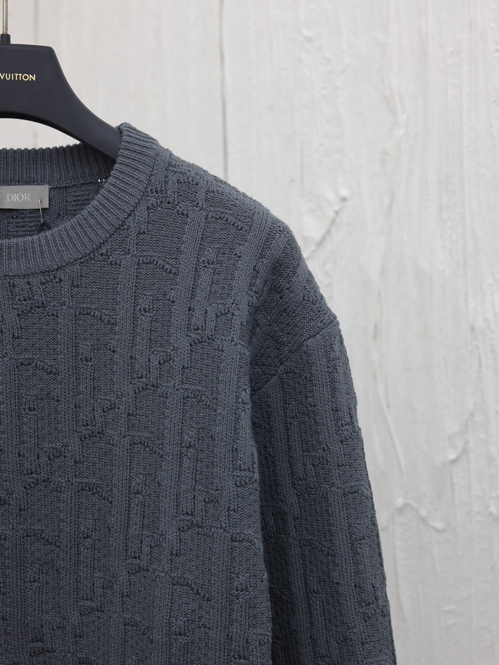 This sweater features the classic oblique print. Crafted from grey cotton blend jacquard, it features an oversized silhouette with ribbing at the neckline, cuffs and hem, and a tonal print throughout, with subtle details that elevate the look
