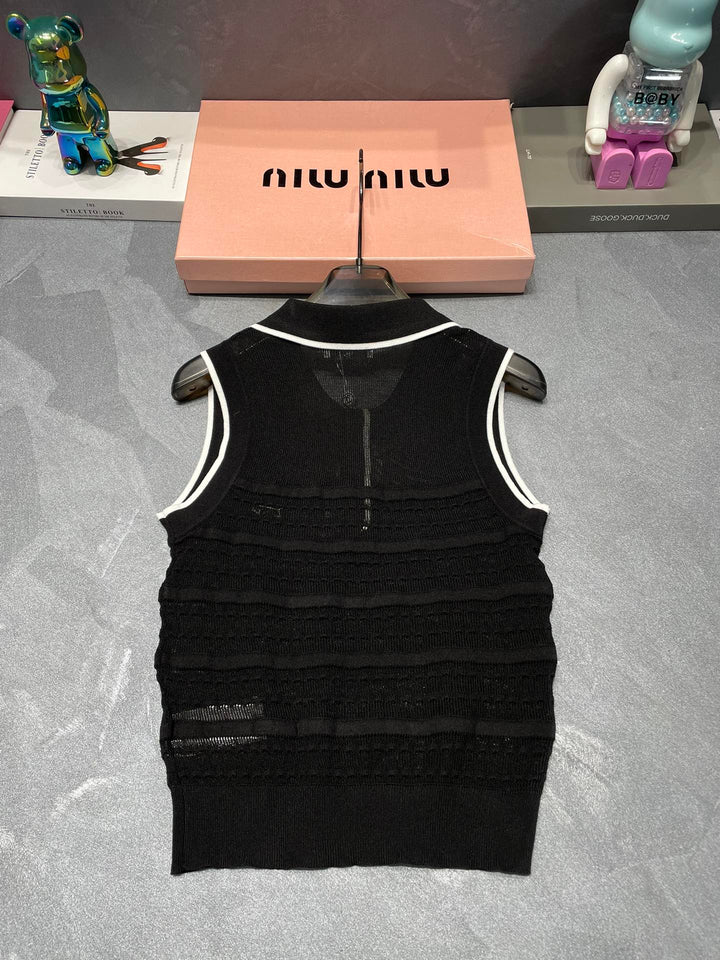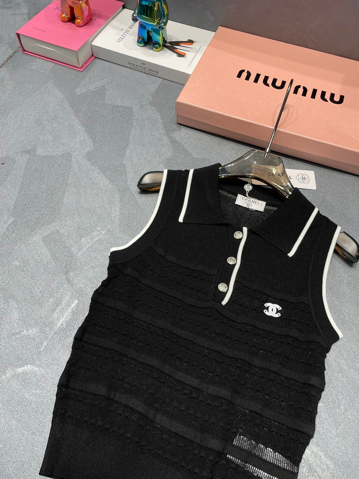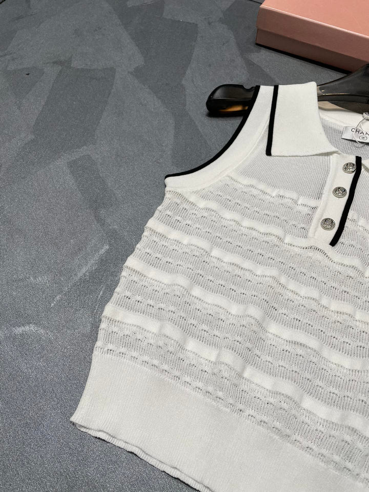 Knitted vest, imported 100% wool material, hollow knitted texture, logo decoration, overall high-end and simple, can be worn alone or layered, suitable for all seasons when worn alone. Single product, simple design, fashionable and high-end