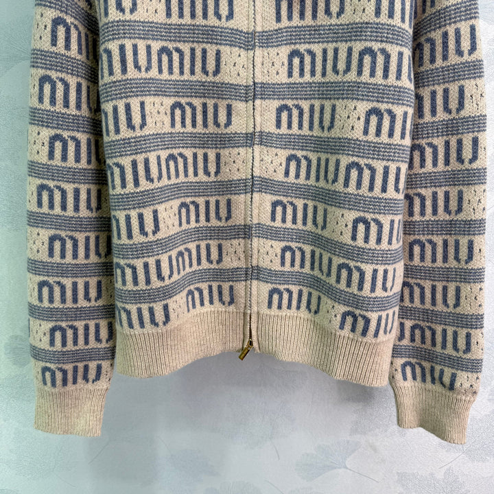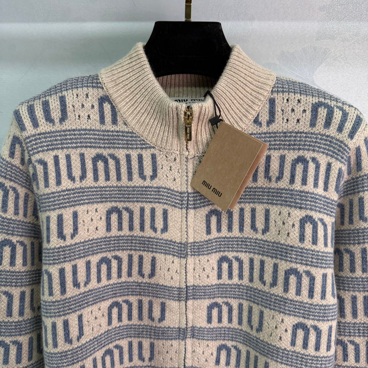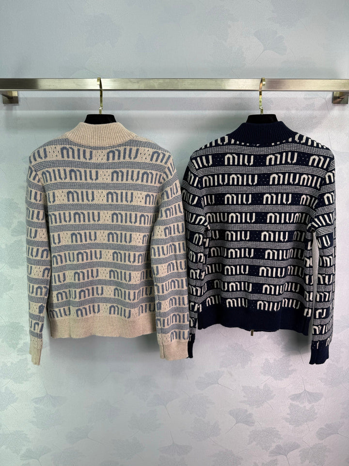 25 autumn and winter new knitted stand collar cardigan classic letter logo contrast jacquard decoration yb open letter logo double zipper classic high-end exquisite versatile size sm