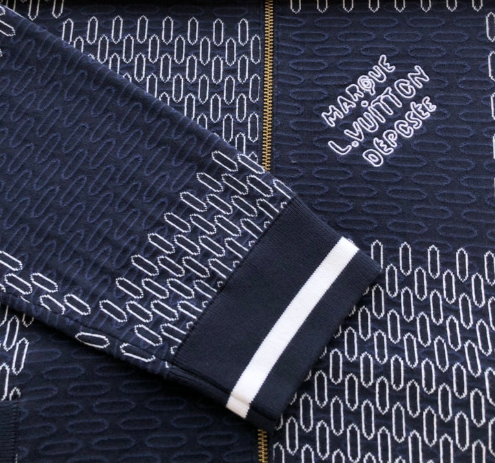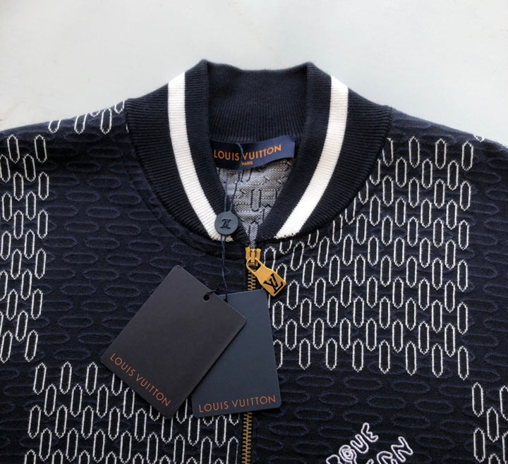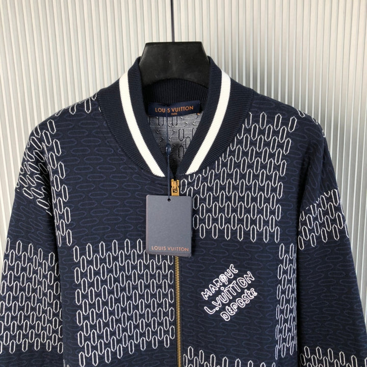 This quilted cotton-knit bomber is dip-dyed in deep hues in large damier jacquard, with bold trim framing the ribbed collar and cuffs. The marque deposee logo is embellished on the left chest, matching the same style.
