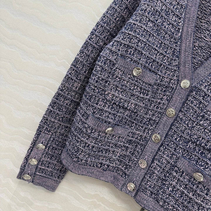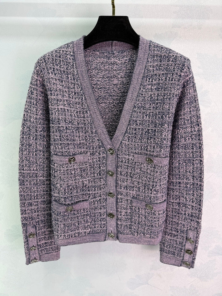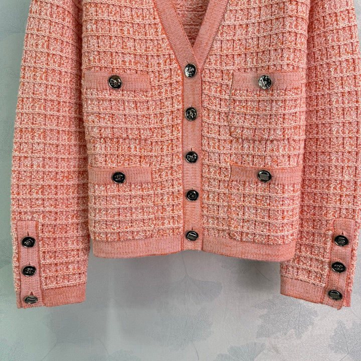 New knitted cardigan for early autumn, V-neck design with double-breasted buttons, classic plaid fabric, gold button embellishment, regular version to accommodate body shape, showing a relaxed tone, highlighting the light luxury and fashionable temperament, can be worn alone or layered, the first choice for fashionable wear in all seasons! 3 colors and 3 sizes sml