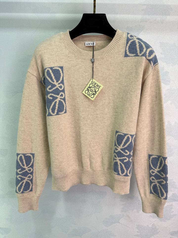 New early fall knit top with classic logo patchwork. Wool blend fabric for a soft and comfortable feel. Perfect with skirts or pants. Super slimming! Available in 2 colors and 3 sizes.