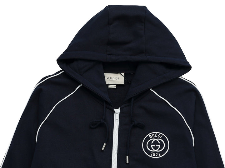 New embroidered letter logo couple style zipper hooded jacket