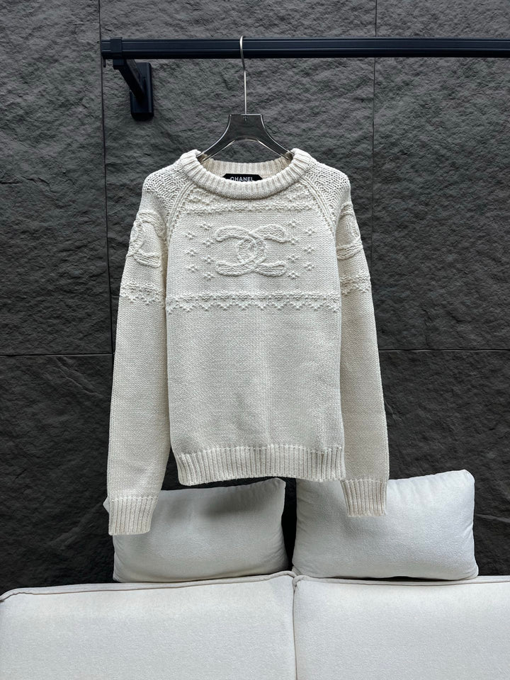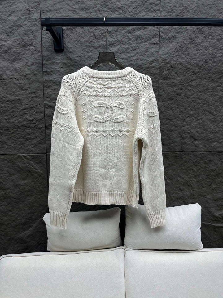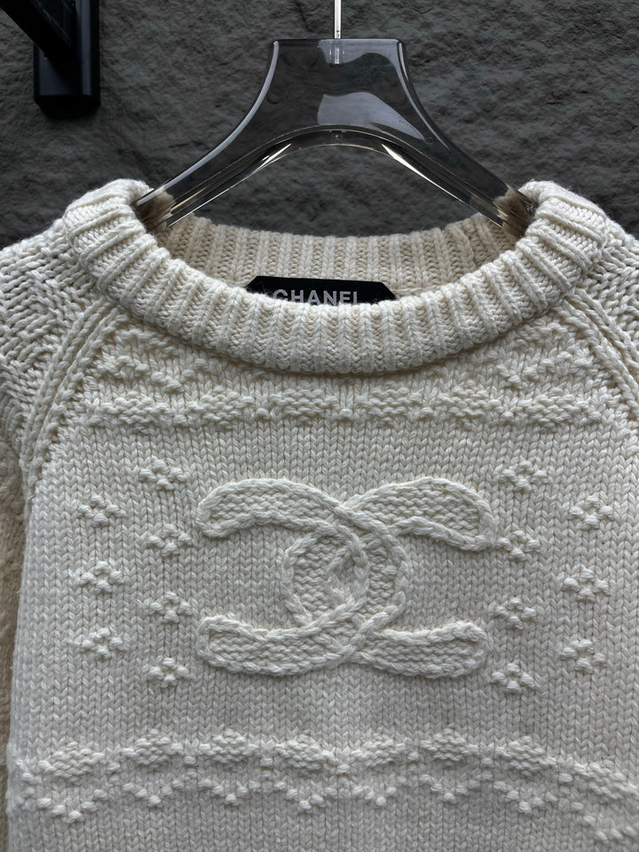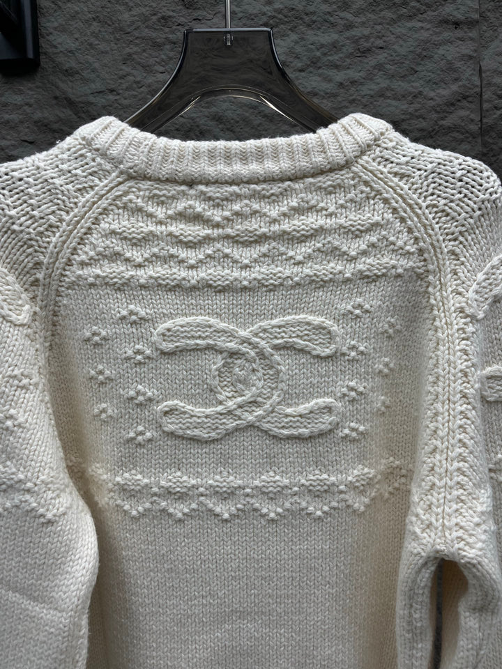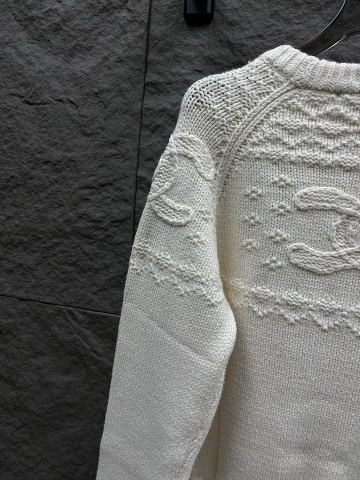 Wrap yourself in this exquisite, off-white Cable Knit Sweater, featuring the signature interlocking logo woven directly into the design. Crafted with a premium blend for ultimate comfort and warmth, this crewneck is a classic statement piece for the cooler months. Pair it with trousers for effortless sophistication, or denim for a chic weekend look. A wardrobe staple that never goes out of style