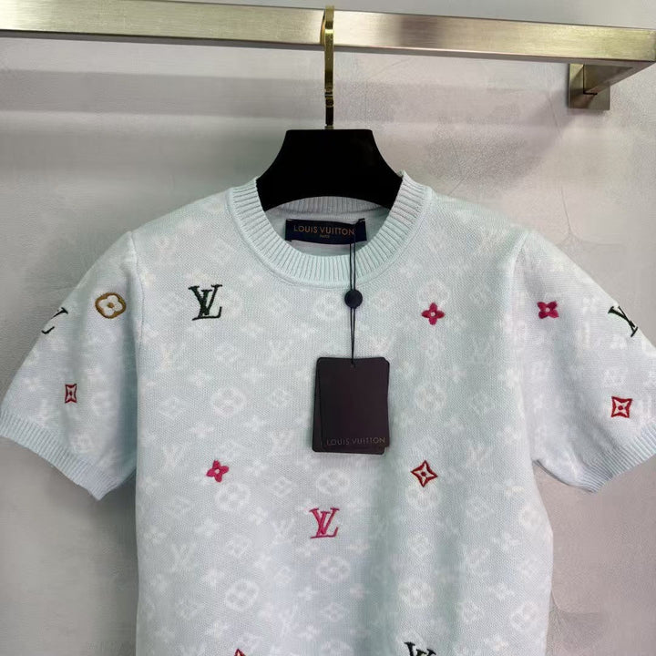 25 Early Spring New Knitted Round Neck Short Sleeve Jacquard Design Classic Letter Logo Embroidery Decoration High-end Fashionable Brands Versatile